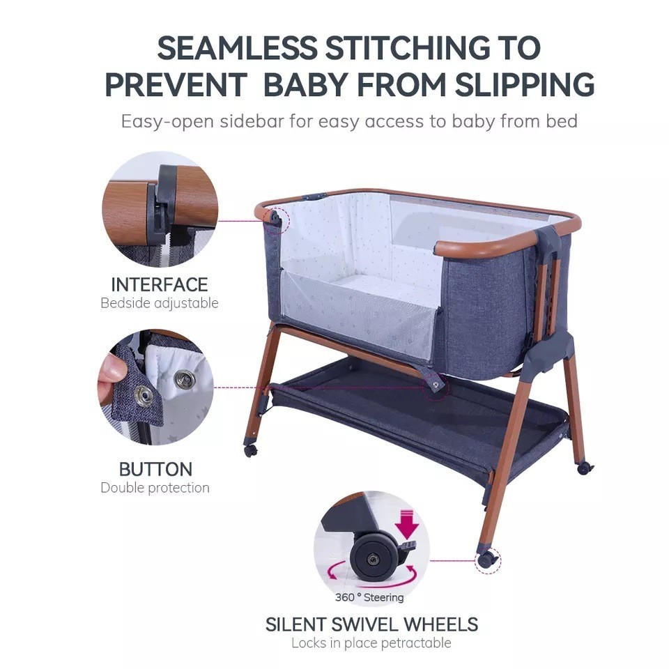 宁波金童婴幼儿用品有限公司发布的跨境热卖 婴儿床可变尿布台带轮子6档高度调节平稳舒适床边床图集库