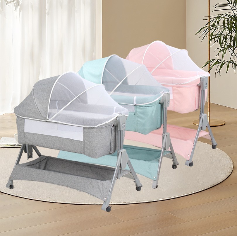卡贝乐(厦门)儿童用品有限公司发布的多功能摇篮床婴儿床移动折叠一键收宝宝床高低可调节新生儿拼接床图集库