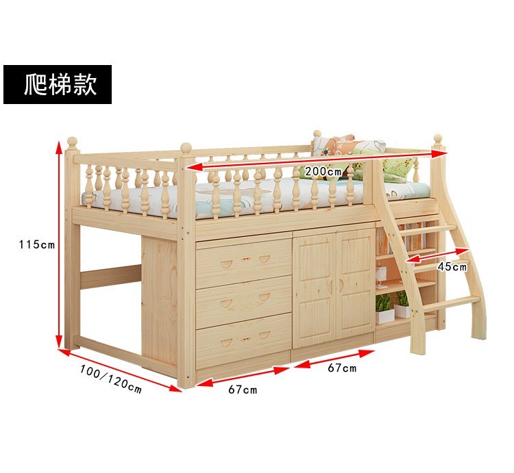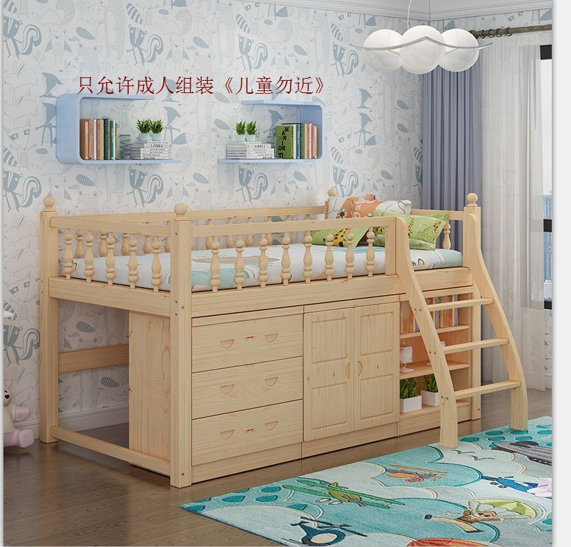 徐州欧润家具有限公司发布的实木松木儿童半高床带书桌衣柜多功能组合床高架床上床下桌省空间图集库