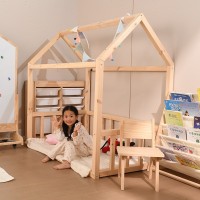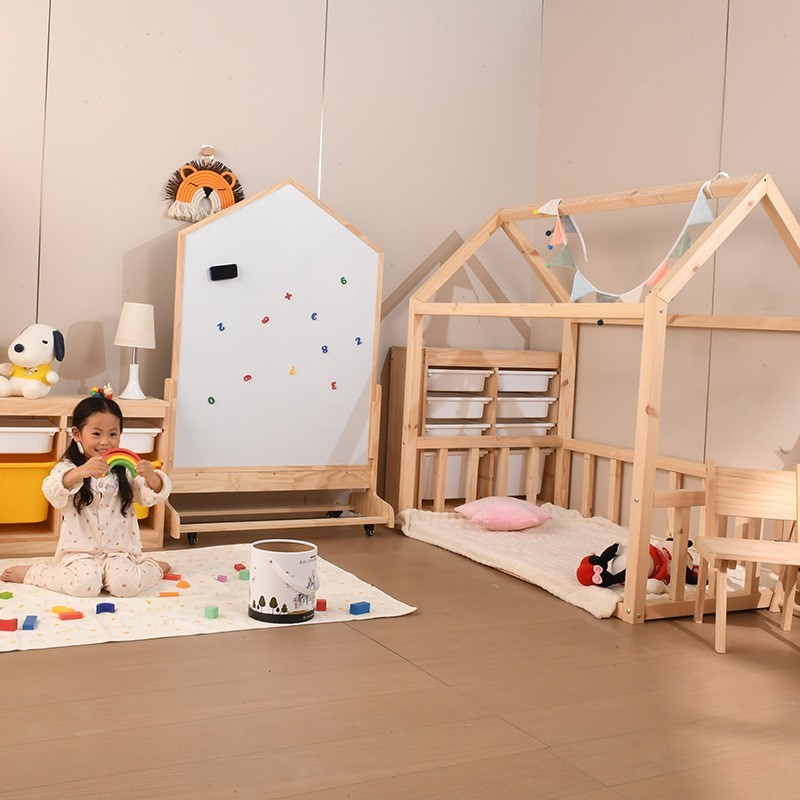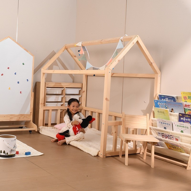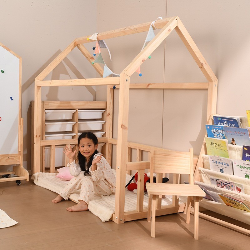 固镇树墩子实木家具厂发布的ins创意款小房子儿童床落地木架床北欧风5*5cm实木房子床拍摄道具图集库