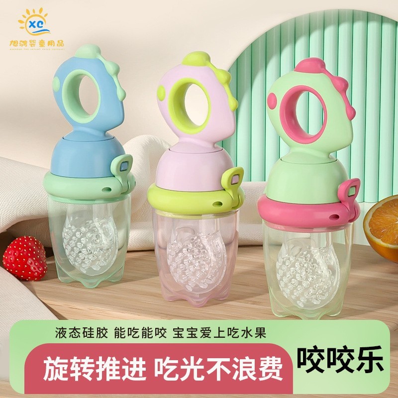 广州旭骋婴童用品有限公司发布的儿童食品级硅胶可推进式咬咬乐婴儿辅食水果果蔬牙胶宝宝安抚奶嘴图集库