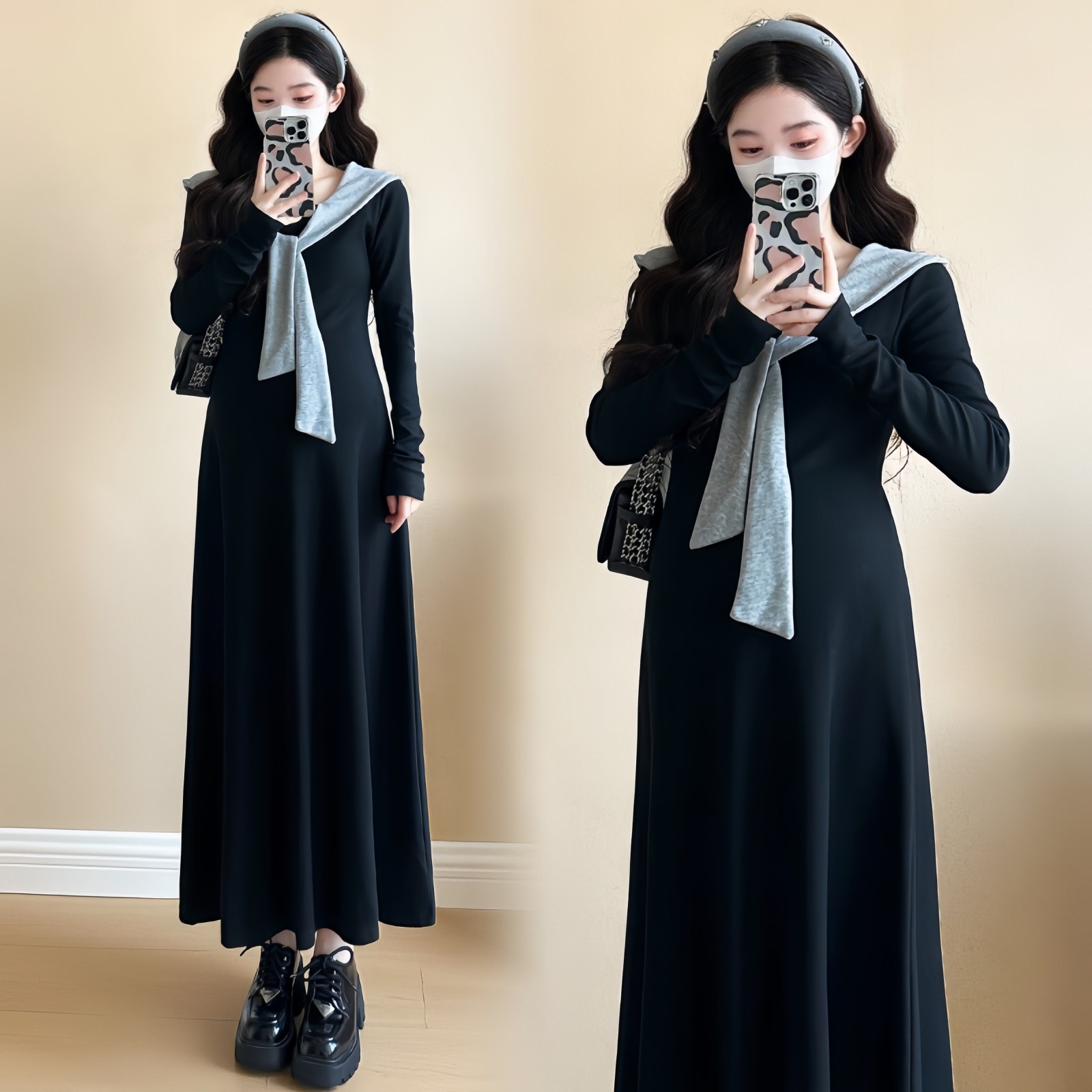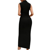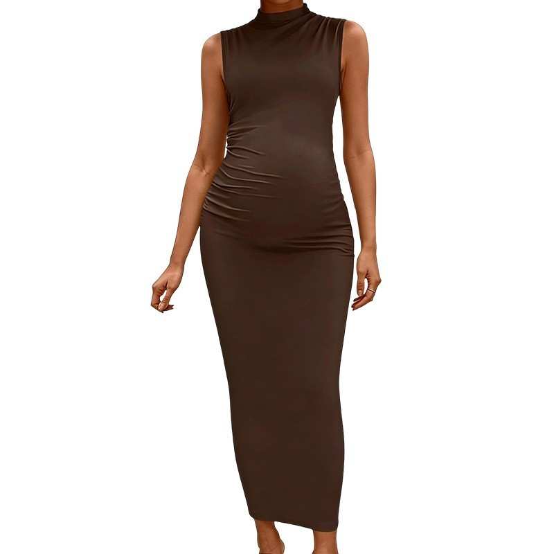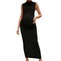东莞泳顺制衣有限公司发布的欧美跨境孕妇无袖高领连衣裙纯色紧身弹性收褶长裙孕期优雅修身裙图集库
