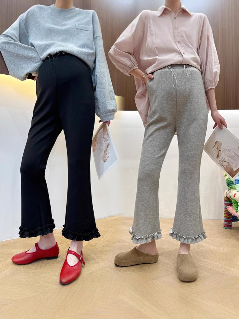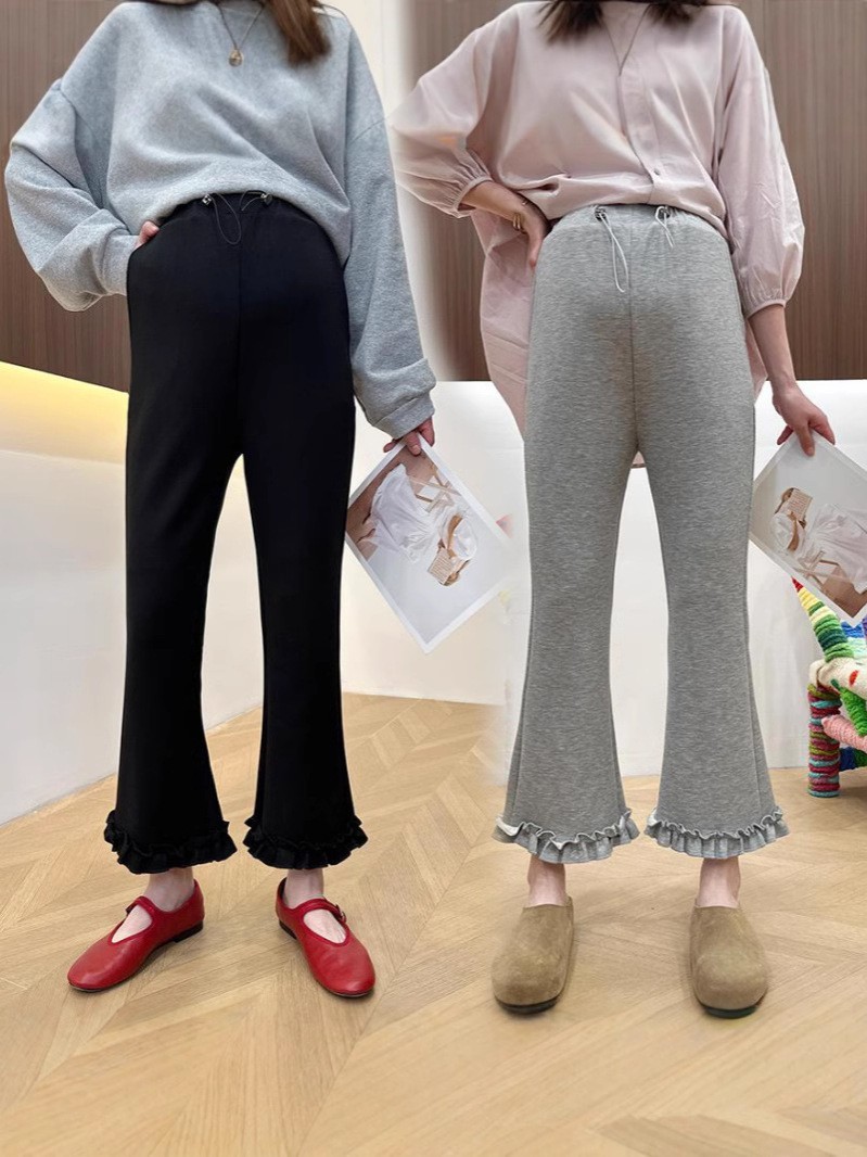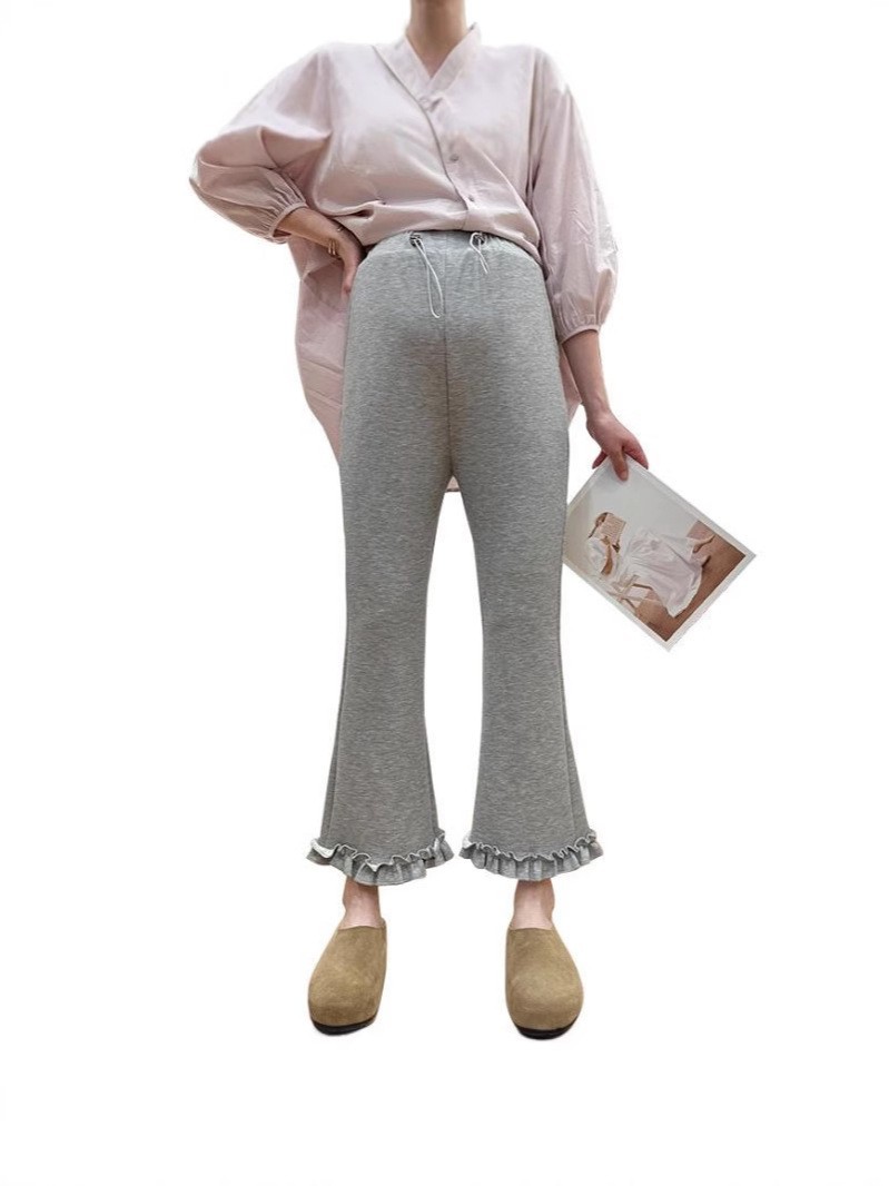 东莞市琦纤服饰有限公司发布的春夏新款孕妇无托腹高腰显瘦木耳边微喇休闲修身荷叶边烟管裤图集库