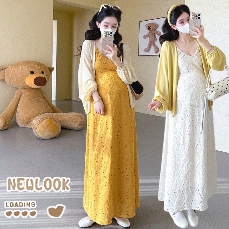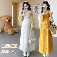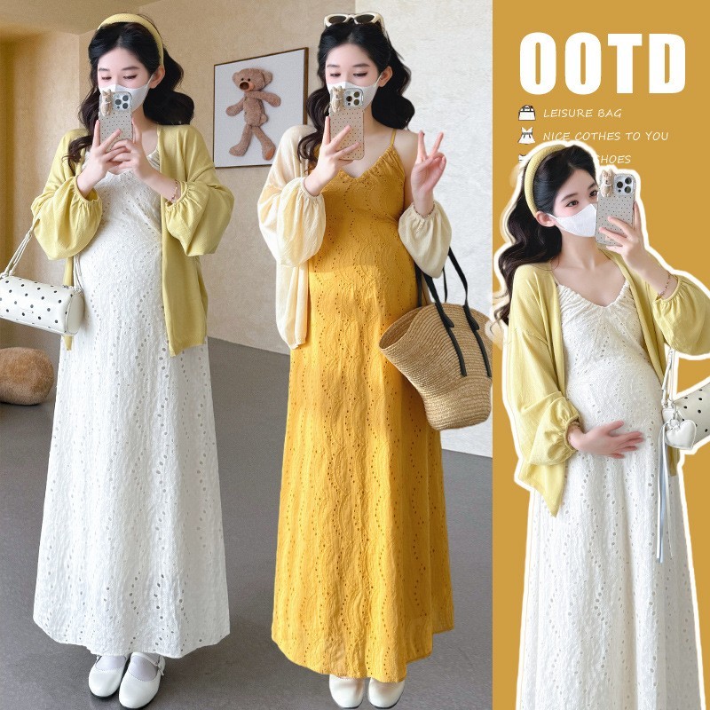 深圳市龙岗区韵薇服装厂发布的孕妇春季套装新品v领度假风连衣裙+针织开衫孕妇套装图集库