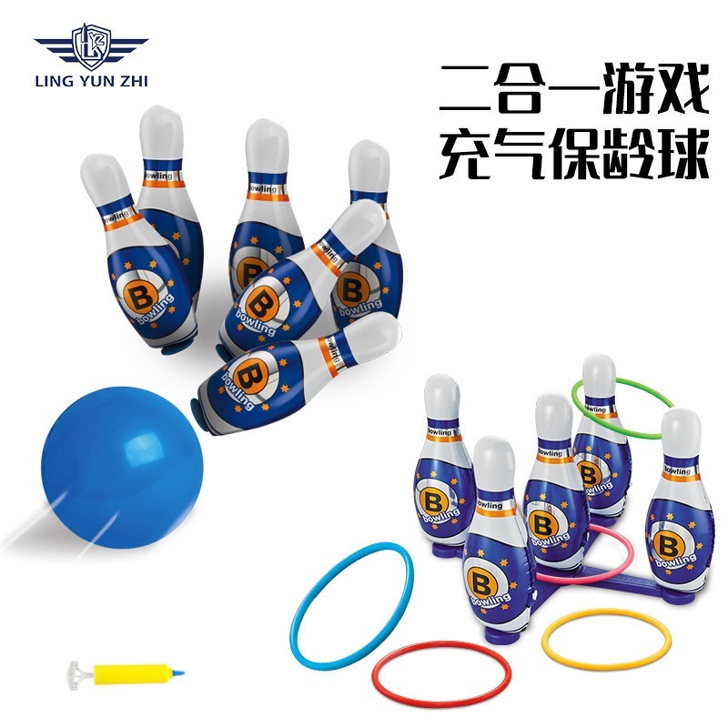 汕头市澄海区粤之青玩具厂发布的跨境热卖创意充气玩具二合一趣味玩法户外游戏保龄球儿童套圈比赛图集库