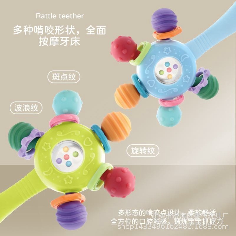 汕头市澄海区煌贝玩具厂发布的宝宝吸盘曼哈摇铃棒婴儿抓握训练安抚玩具摇铃转转乐婴幼儿手摇棒图集库