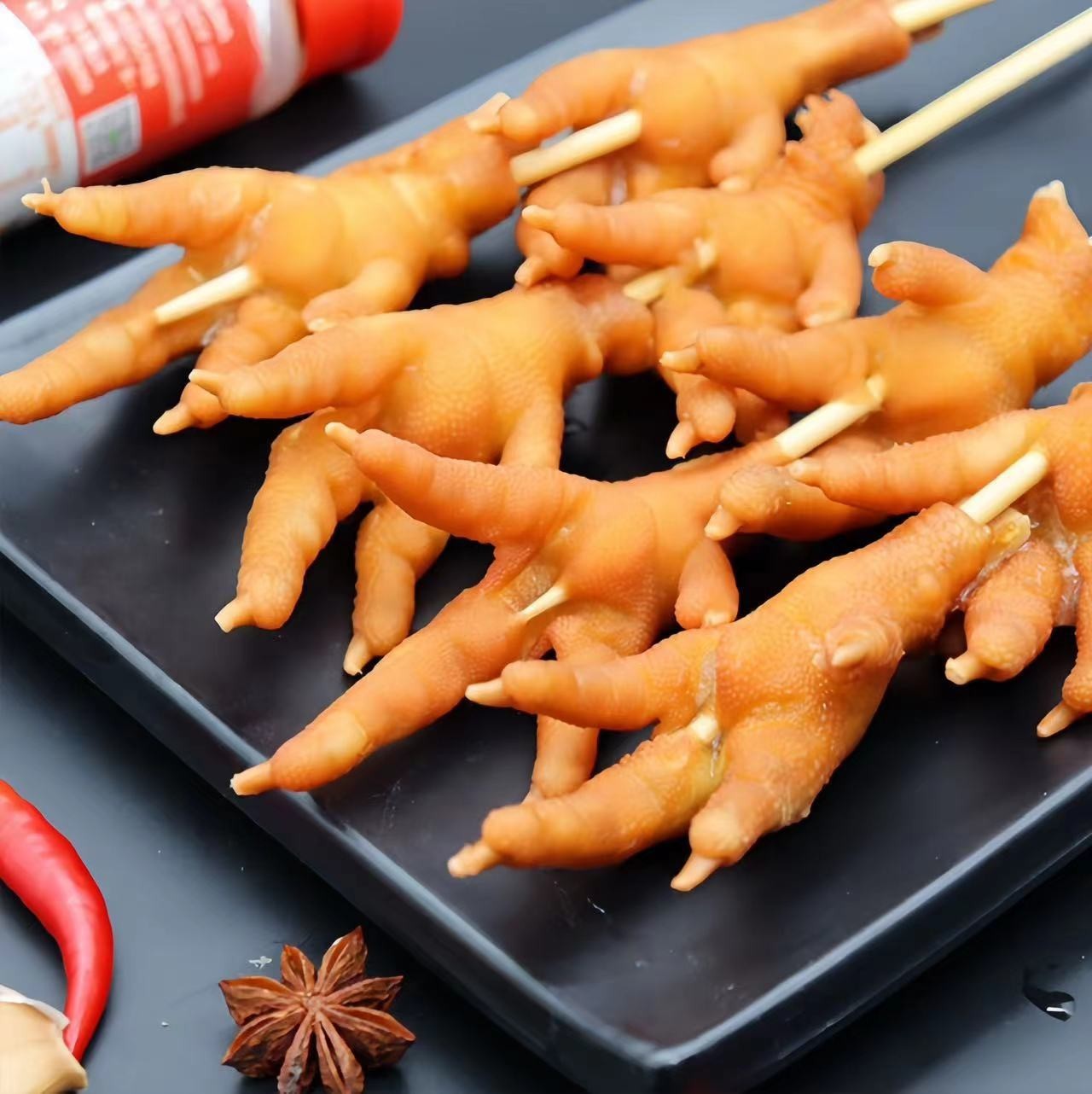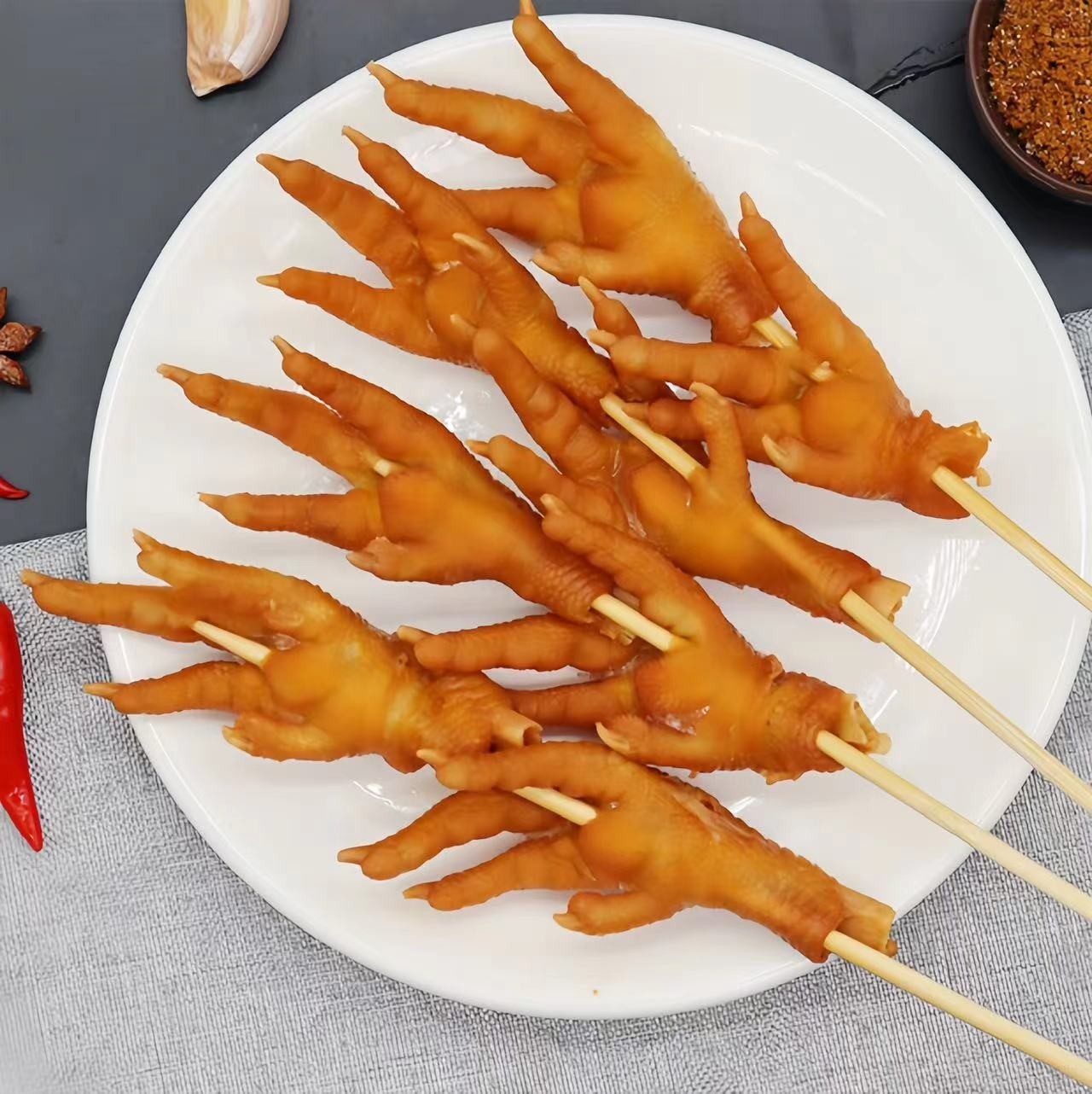 韶山市韶新食品开发有限公司发布的卤烤凤爪串冷冻半成品已腌制调理大鸡爪卤味鸡爪烧烤食材10串商用图集库