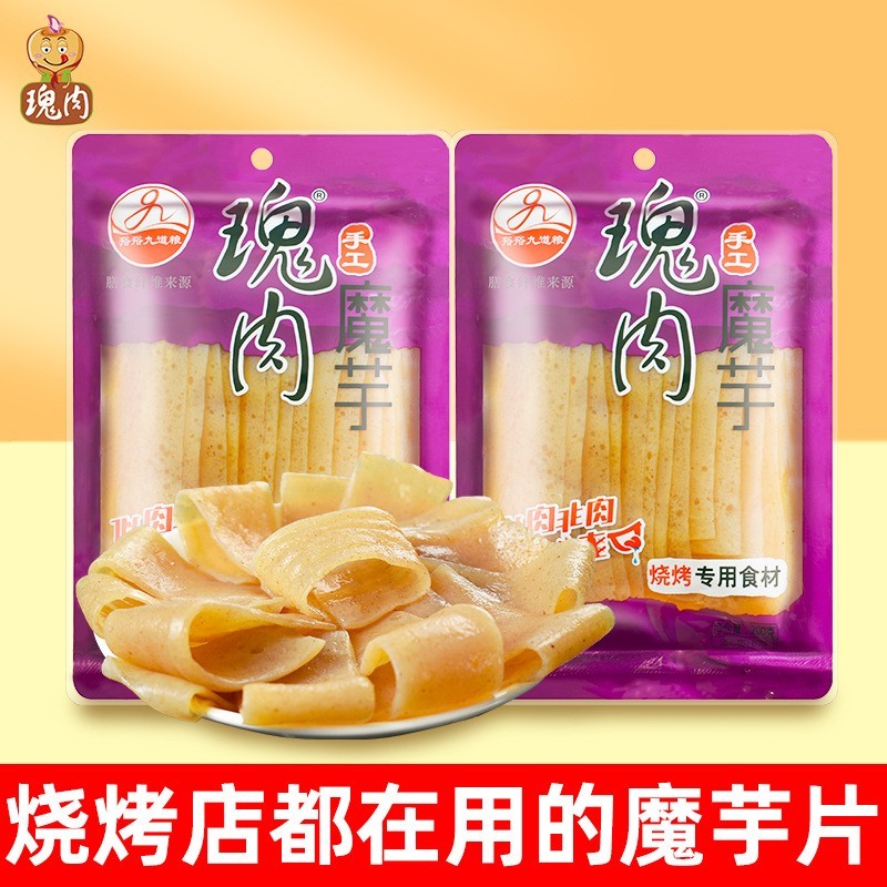 四川九道梁食品有限公司发布的网红烧烤食材低脂魔芋片200G袋装烧烤店低卡食品湿魔芋皮工厂图集库