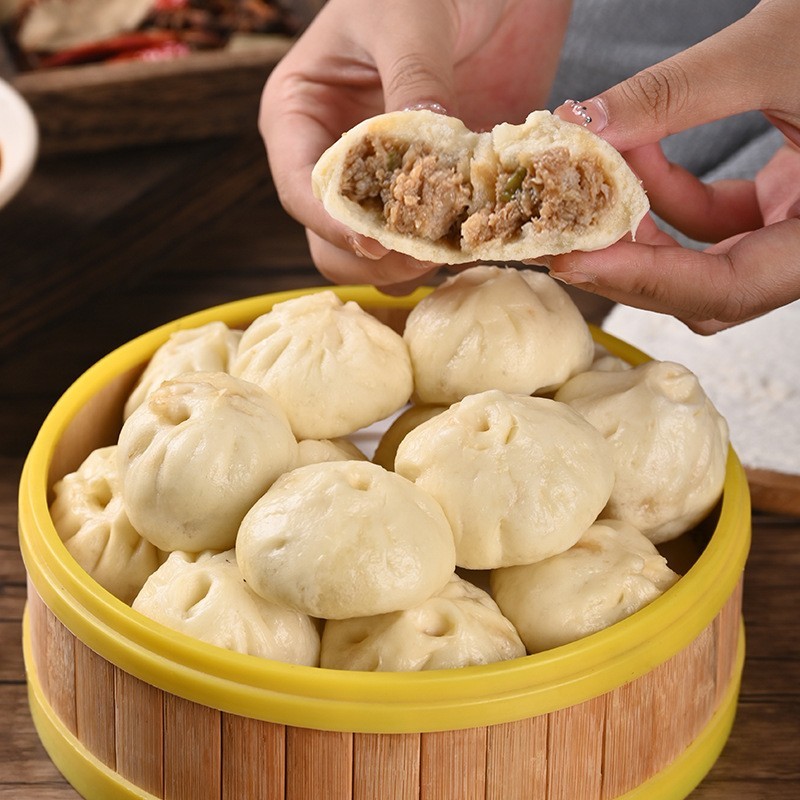 河南焦点食品有限公司发布的早餐半成品食材加热即食夜市摊包子纯手工制作嵊州老面小笼包图集库