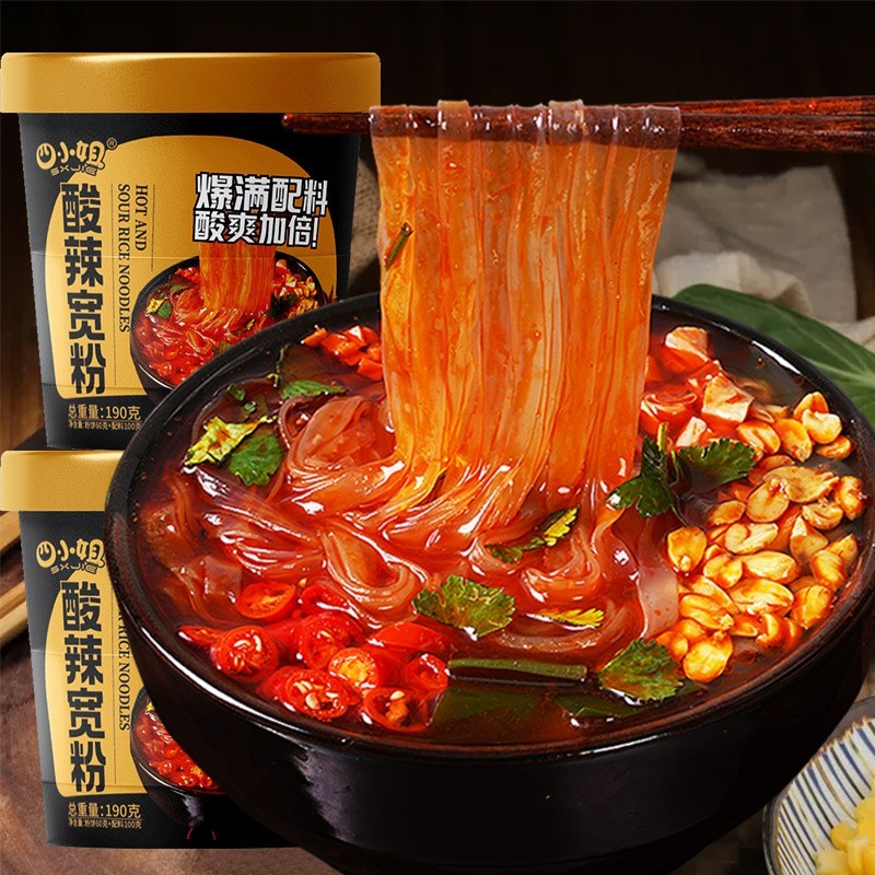 河南省品泽食品有限公司发布的酸辣粉黑金版桶装大克重粉丝懒人免煮冲泡粉丝米线方便速食图集库