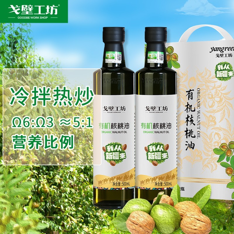 新疆阳光绿地农业科技有限公司发布的有机核桃油礼盒500ml*2瓶装团购福利节日礼品一级压榨核桃油图集库