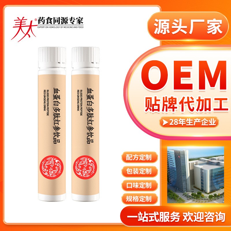 中山市美太保健制品有限公司发布的定制低聚果糖血蛋白多肽红参饮品贴牌小分子PQQ肽口服液饮OEM代加工图集库