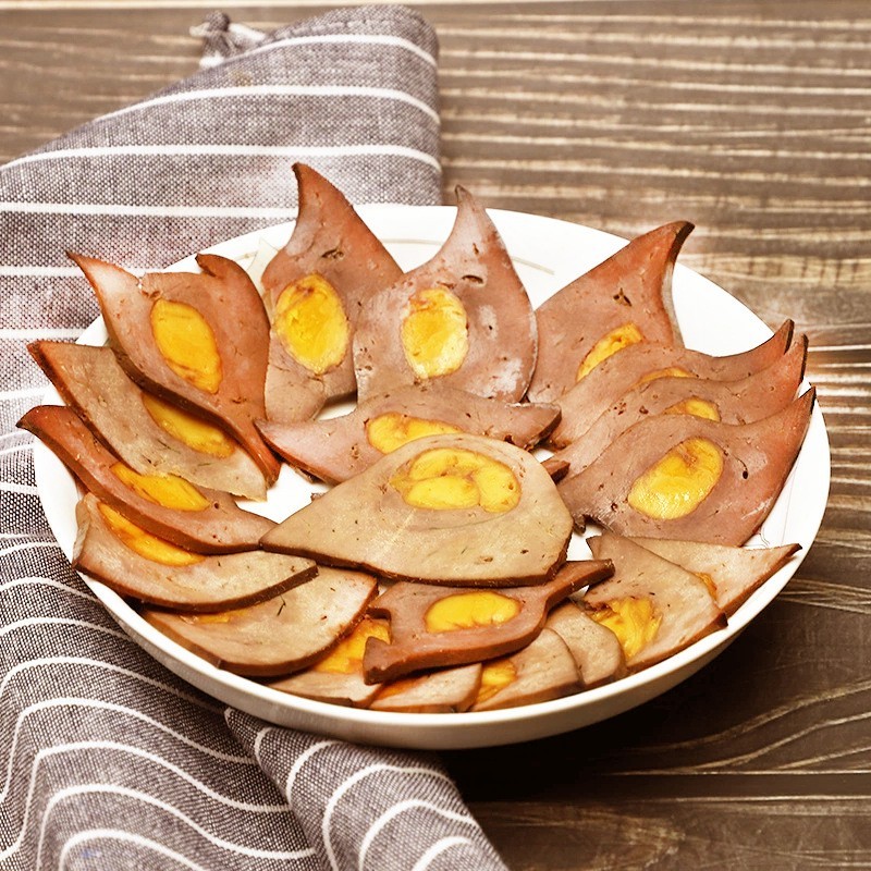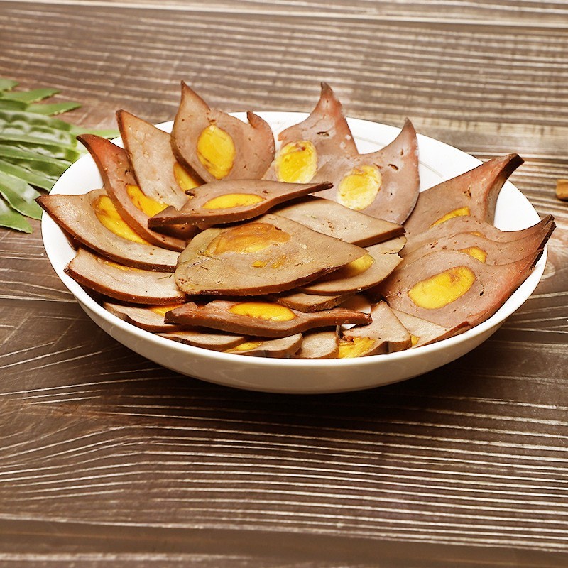四川岳老大食品有限责任公司发布的蛋黄猪肝下酒菜酒店饭店特色川菜四川特产金银猪肝图集库