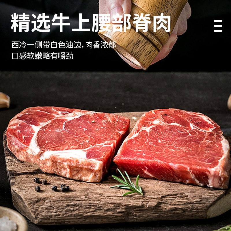 | 包装规格 | 整切西冷牛排一袋100g*10片送黑椒汁10包,整切西冷牛排一袋120g*10片送黑椒汁10包,整切西冷牛排一袋130g*10片送黑椒汁10包,整切西冷牛排一袋150g*10片送黑椒汁10包,整切西冷牛排一袋200g*10片送黑椒汁10包,整切菲力牛排一袋100g*10片送黑椒汁10包,整切菲力牛排一袋120g*10片送黑椒汁10包,整切菲力牛排一袋130g*10片送黑椒汁10包,整切菲力牛排一袋150g*10片送黑椒汁10包,整切菲力牛排一袋200g*10片送黑椒汁10包,整切眼肉牛排一袋100g*10片送黑椒汁10包,整切眼肉牛排一袋120g*10片送黑椒汁10包,整切眼肉牛排一袋130g*10片送黑椒汁10包,整切眼肉牛排一袋150g*10片送黑椒汁10包,整切眼肉牛排一袋200g*10片送黑椒汁10包,原切0添加西冷牛排1000g(6-7片)送黄油黑椒汁,原切0添加眼肉牛排1000g(6-7片)送黄油黑椒汁,原切0添加上脑牛排1000g(6-7片)送黄油黑椒汁,原切0添加板腱牛排1000g(8-9片)送黄油黑椒汁,原切0添加战斧牛排1000g(3-4原切0添加战斧牛排1000g(3-4片)送黄油黑片)送黄油黑椒汁 | 包装系列 | 简装系列 |