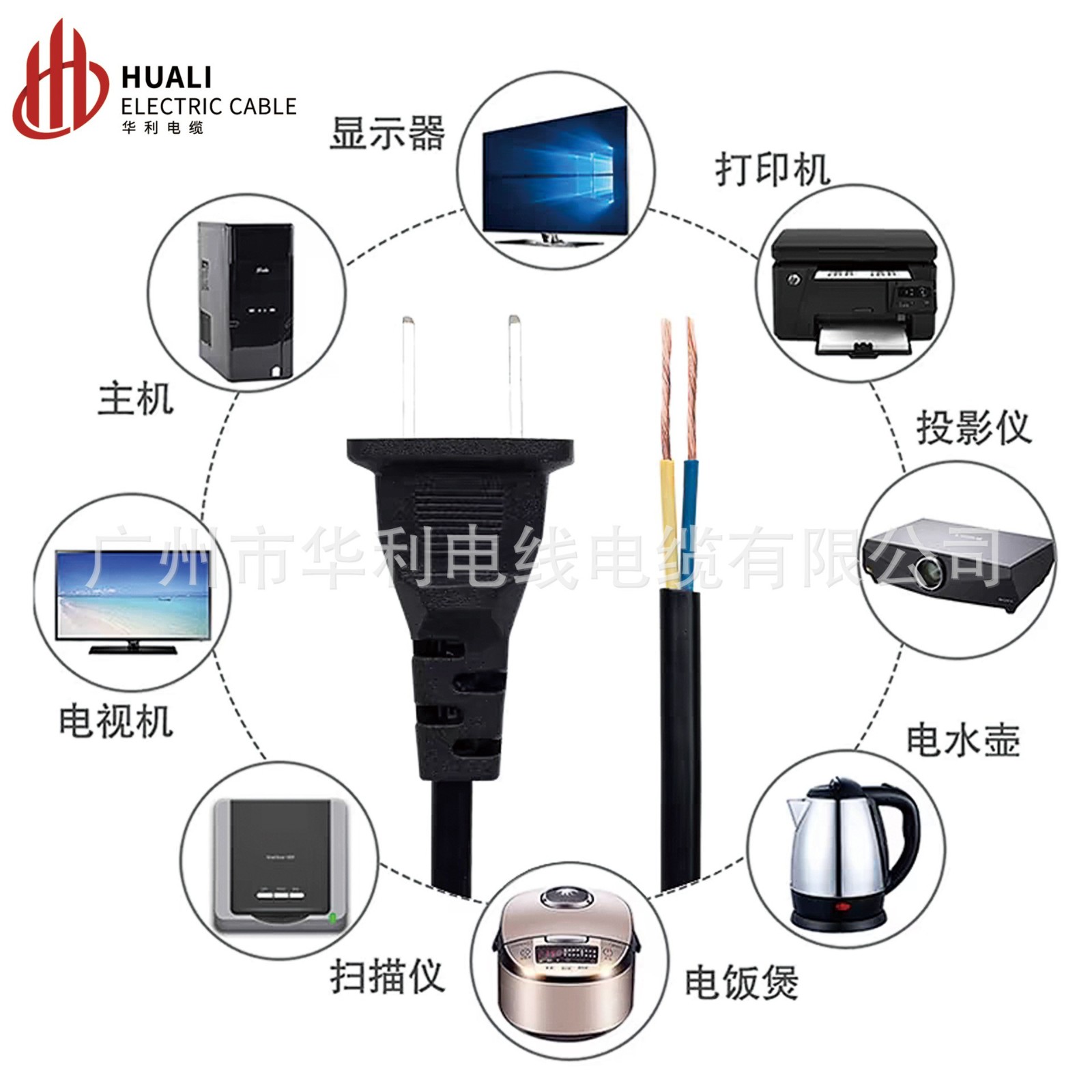 广州市华利电线电缆有限公司发布的国标纯铜2芯电源线带插头二插两孔护套延长线 0.75 1平方1 2 3米图集库