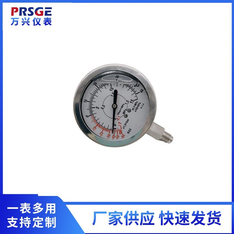 富阳万兴仪表有限公司发布的冷媒压力表 径向耐震 双针双管冷媒压力表YN80/7/16-2图集库