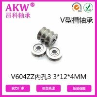 慈溪昂科轴承有限公司发布的微型V604ZZ 3*12*4MM 凹槽过线吊轮滑轮V槽轴承图集库