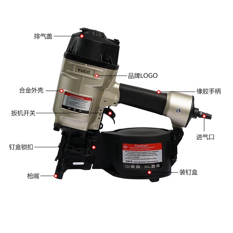 重庆亚工机械制造有限公司发布的卷钉枪电缆木托盘气动射钉枪跨境CN45/CN50全套跨境热销图集库