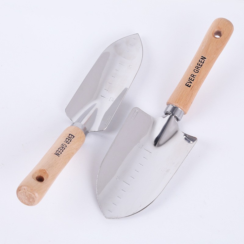 临沂广华园林工具有限公司发布的榉木柄不锈钢园艺移植铲 栽花栽苗铁铲 园艺工具花园铲不锈钢花铲图集库
