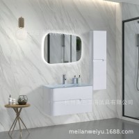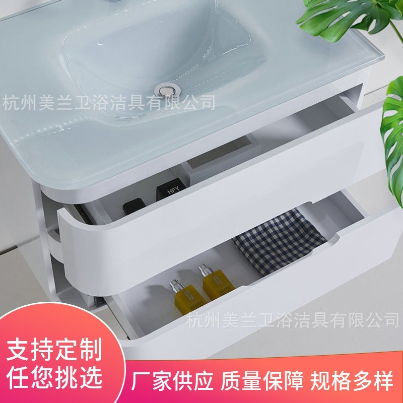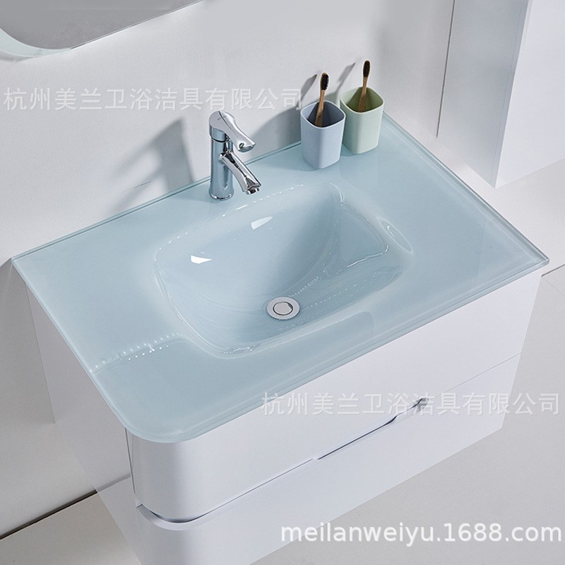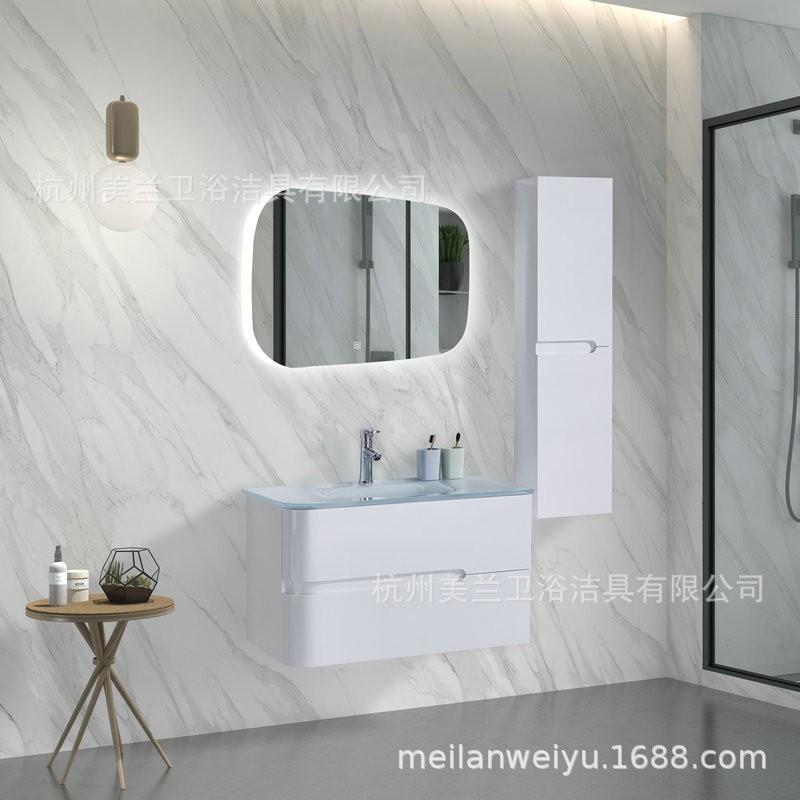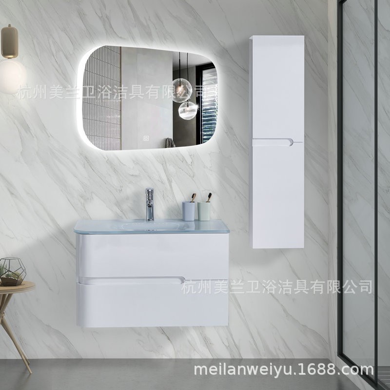 杭州美兰卫浴洁具有限公司发布的简约现代卫生间浴室柜组合钢化玻璃洗漱玻璃盆LED多层板浴室镜柜图集库
