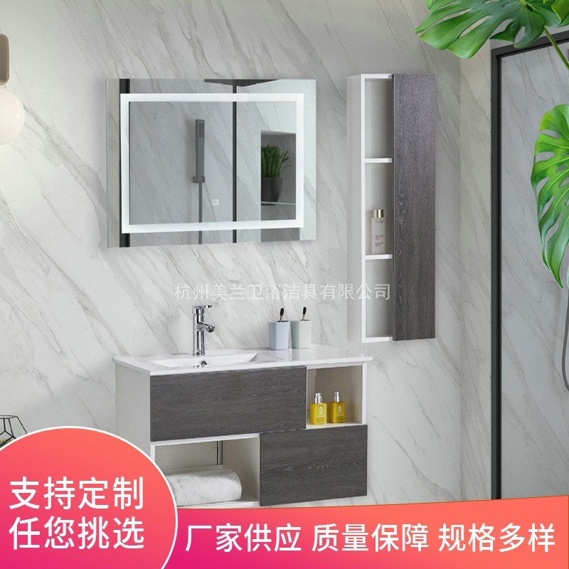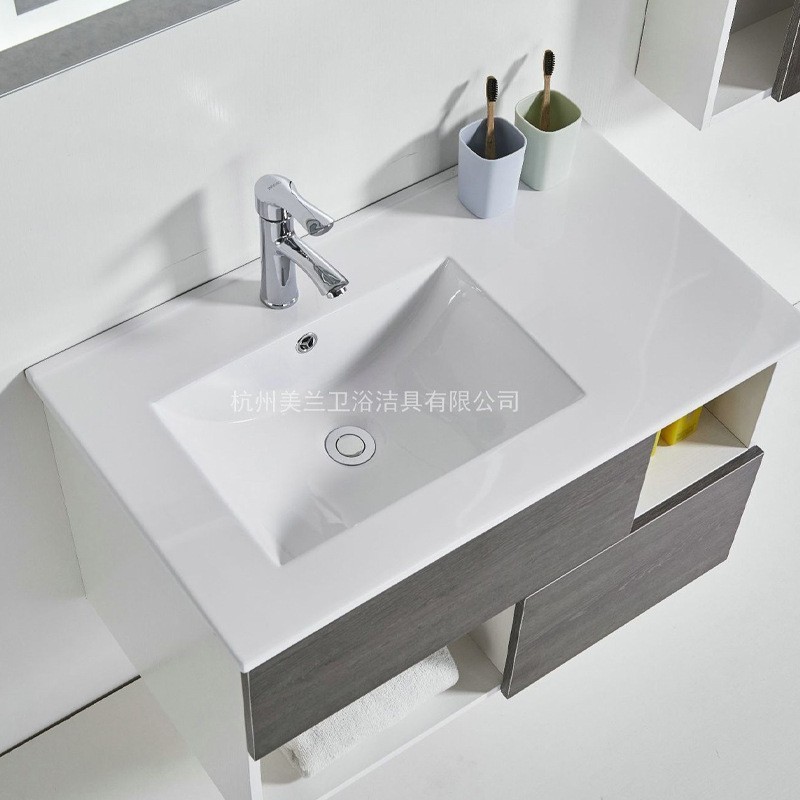 杭州美兰卫浴洁具有限公司发布的欧式陶瓷盆带LED镜子卫浴柜卫生间多层板实木浴室柜图集库