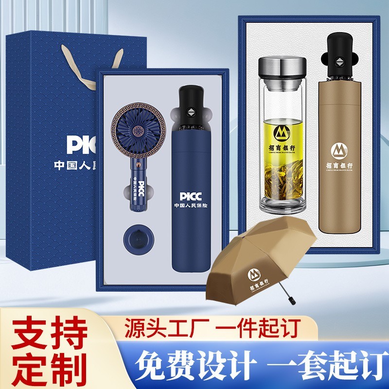深圳市小满礼业有限公司发布的玻璃杯商务礼品公司开业活动创意实用雨伞风扇套装夏季伴手礼图集库