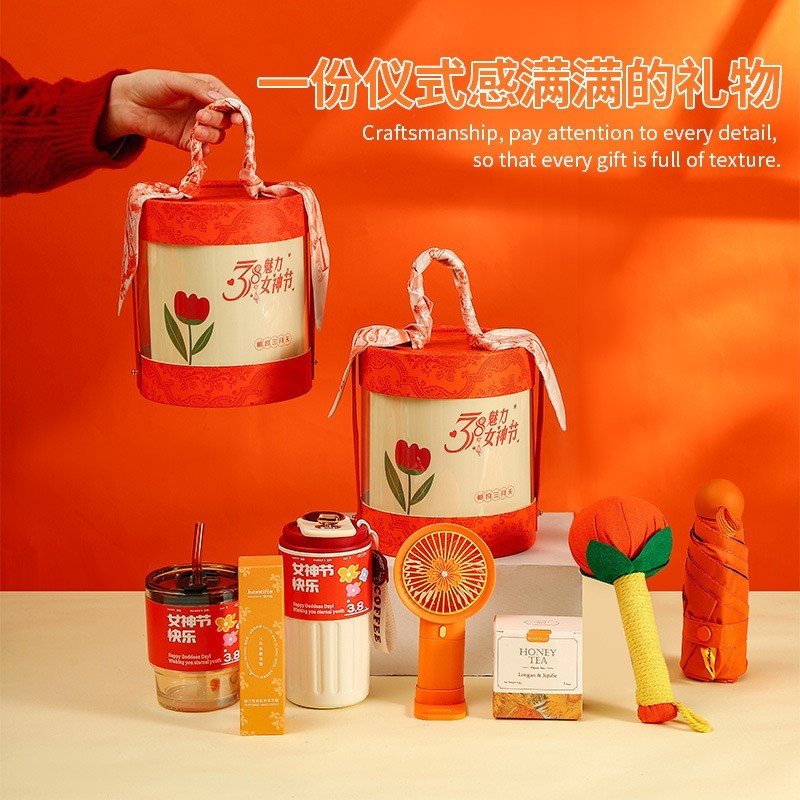 义乌市诚迪家居用品有限公司发布的三八妇女节橙色圆桶女神节礼品套装送员工实用小礼品送老师可logo图集库