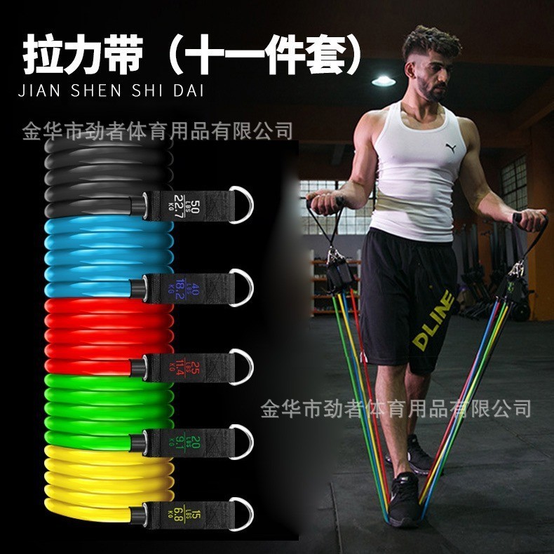 金华市劲者体育用品有限公司发布的健身拉力绳11件套弹力带可调解多功能弹力绳抗阻力训练臂力拉力器图集库