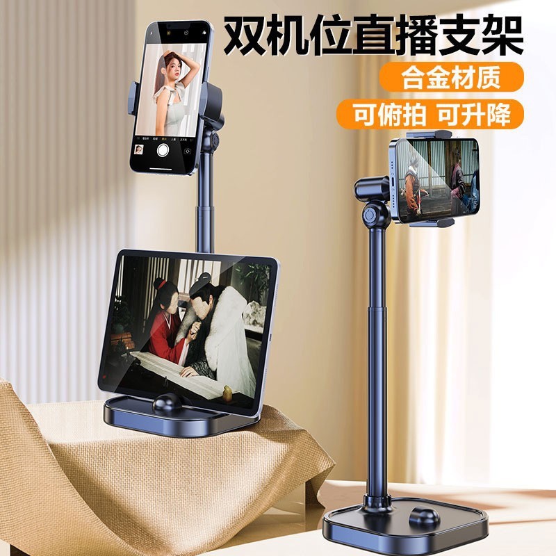 深圳市诺领科技有限公司发布的金属手机支架桌面俯拍直播可升降调节多功能手机平板双机位支架图集库