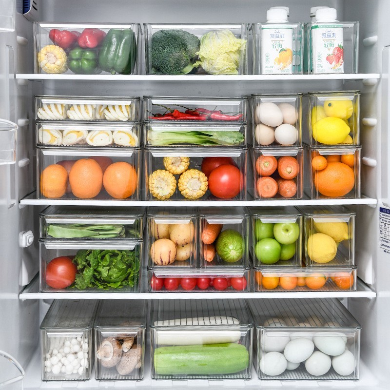 台州框框科技有限公司发布的定制冰箱收纳盒PET水果蔬抽屉式透明厨房储物盒带盖防尘叠加保鲜图集库