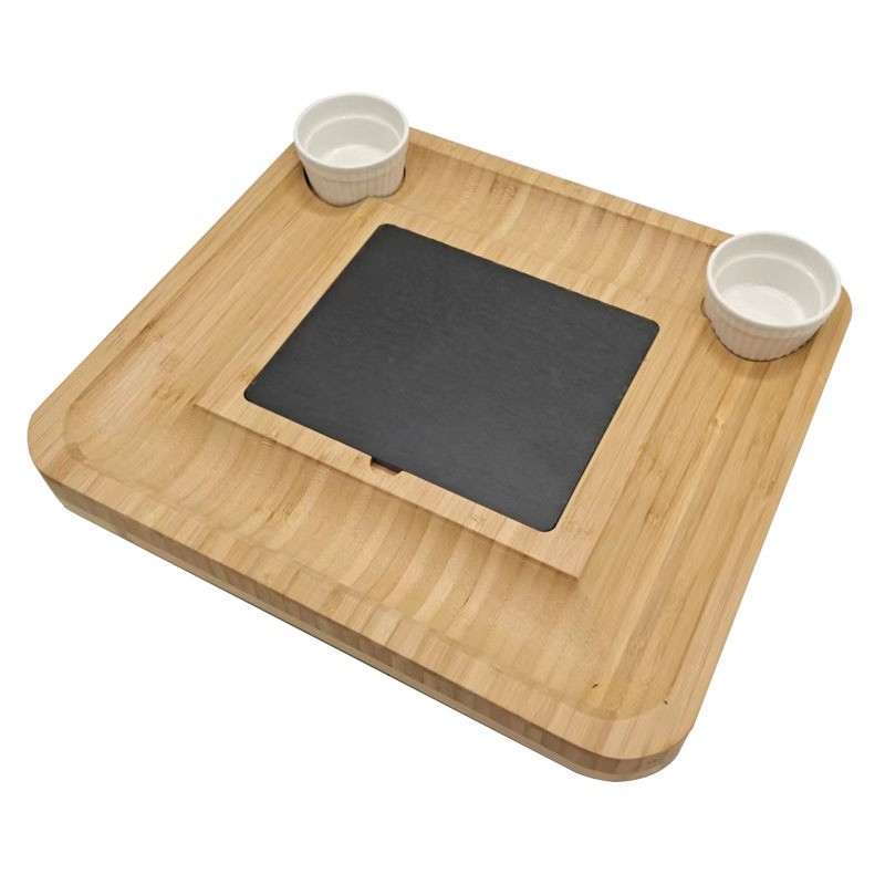 建瓯市灿达竹木制品有限公司发布的竹制披萨盘西式竹制砧板带板岩刀叉竹制披萨托盘组合套装图集库