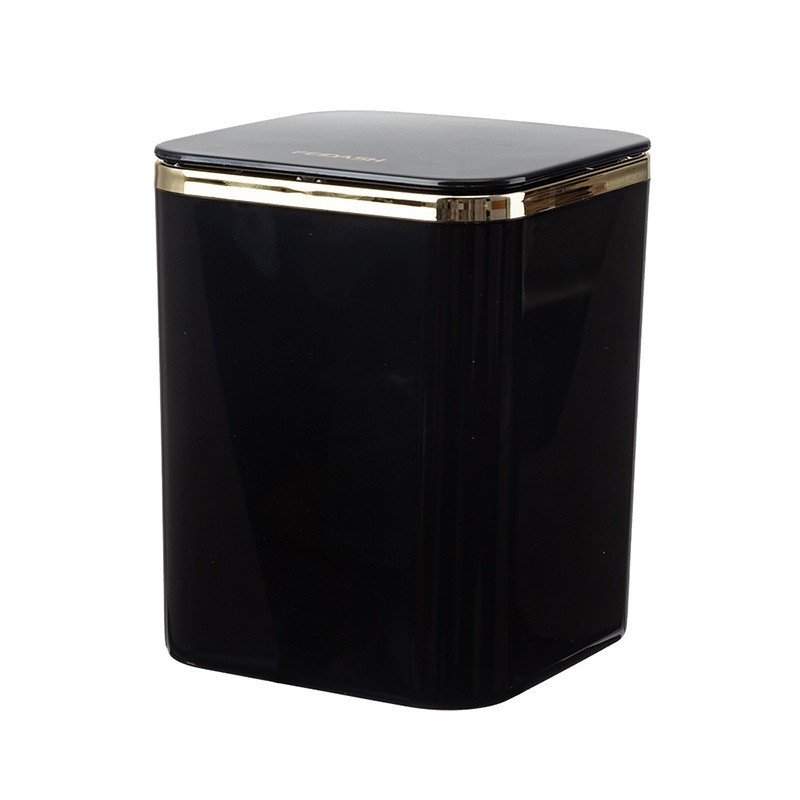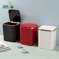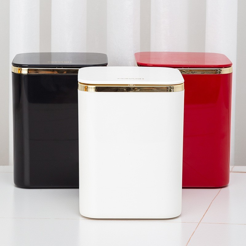 浙江飞达三和家居用品有限公司发布的定制金边方形桌面垃圾桶时尚家用亮面塑料带盖按压式垃圾桶图集库