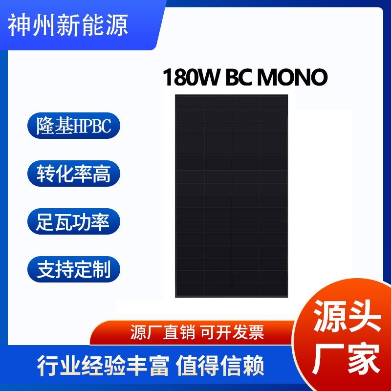 江苏神州新能源电力有限公司发布的180W全黑无栅线BC组件单晶BC太阳能板隆基HPBC电池片图集库