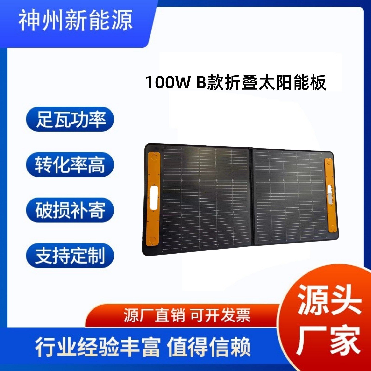 江苏神州新能源电力有限公司发布的太阳能柔性折叠板单晶100W便携式光伏板户外电源折叠包图集库