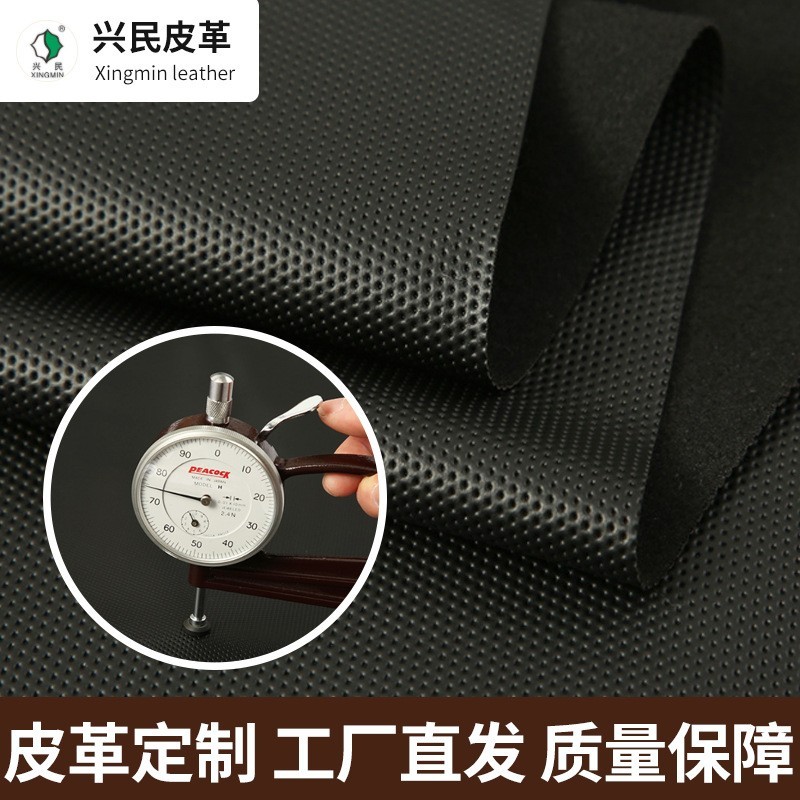 义乌市兴民皮革制品有限公司发布的厂家PU人造革打孔摩配头盔革沙发坐垫方向盘套透气皮革面料图集库