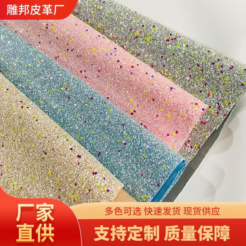 义乌市雕邦皮革厂发布的弹力夜光格力特亮片DIY手工墙布皮革金葱面料配饰幻彩格利特高级图集库