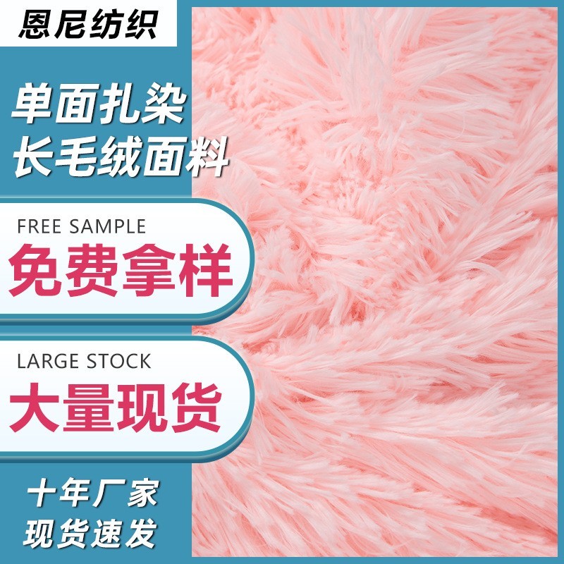 常熟市恩尼纺织品有限公司发布的七彩色渐变单面扎染长毛绒面料玩具扎染pv绒长毛绒图集库