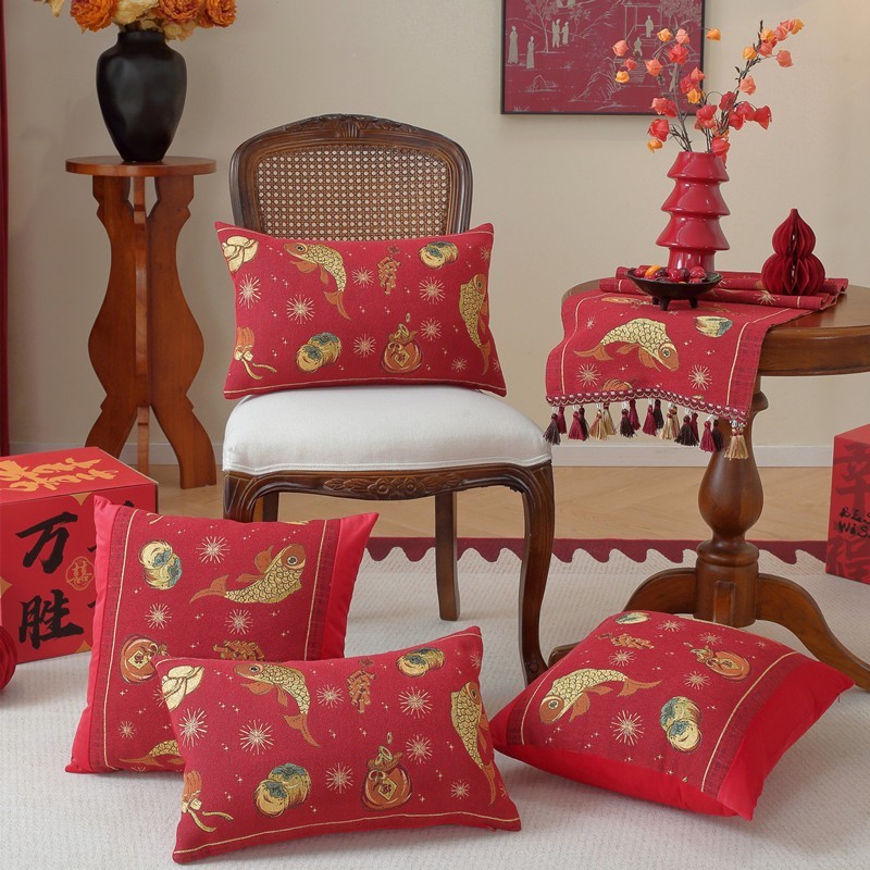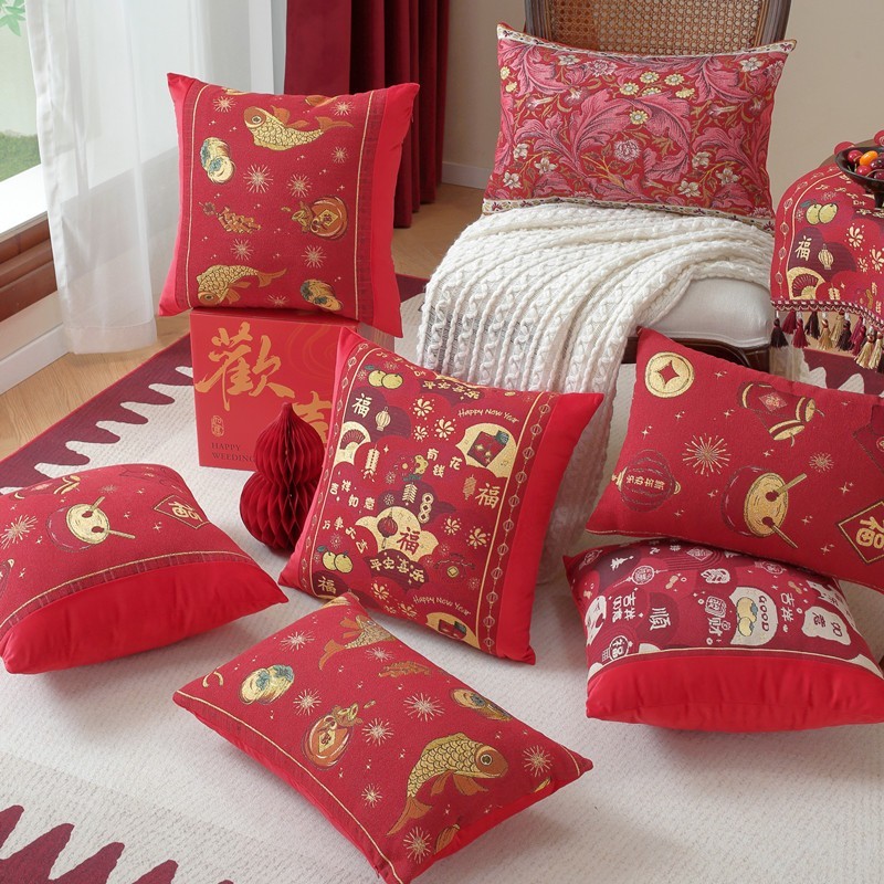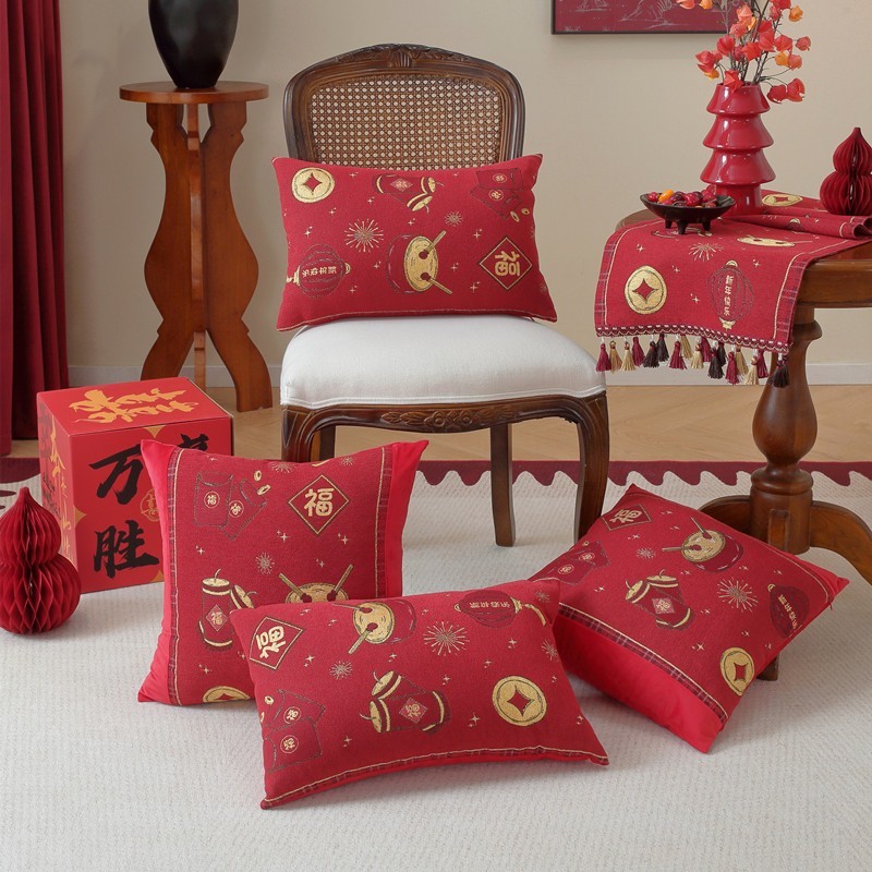 义乌市悦聪家纺有限公司发布的新款色织提花新年款喜庆拼接抱枕套客厅沙发靠垫腰枕中式节日装饰图集库