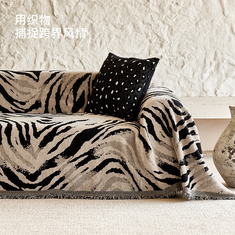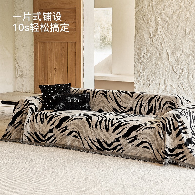 保定慢说地毯制造有限公司发布的2025年复古风沙发巾盖布雪尼尔中古斑马四季通用全包沙发毯垫套罩图集库