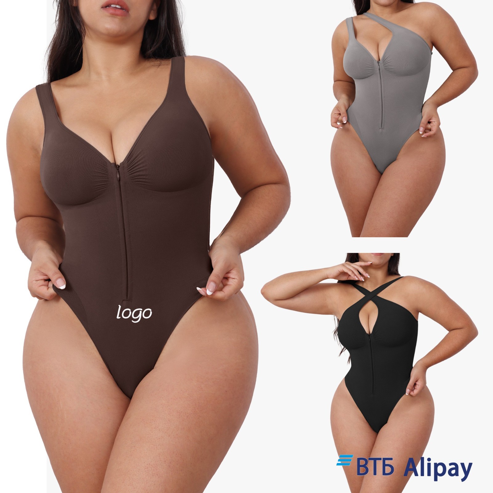 广州铭蒂服饰有限公司发布的新品束身衣无缝塑形强收腹吊带连体内衣拉链露背提臀塑身连体衣图集库