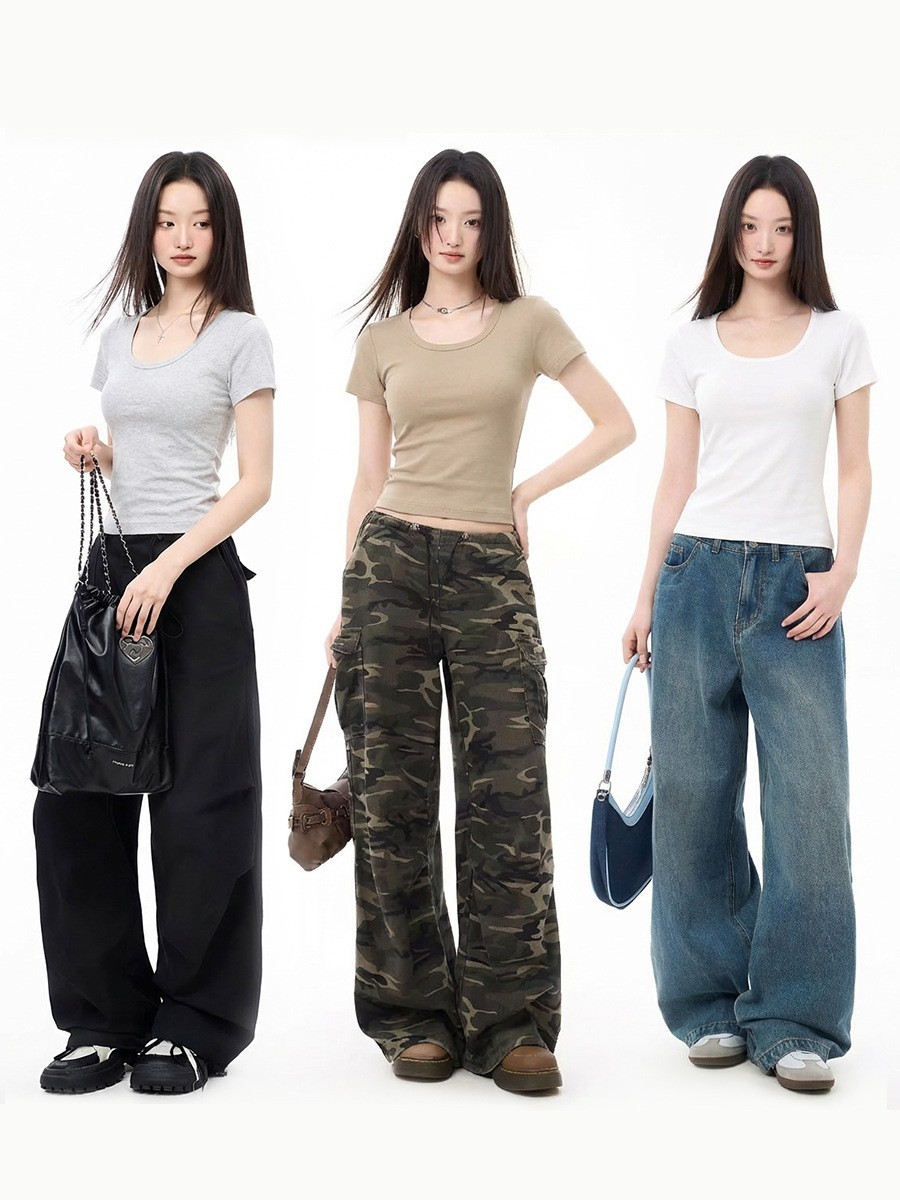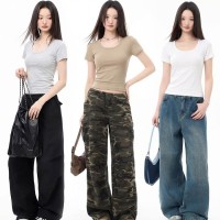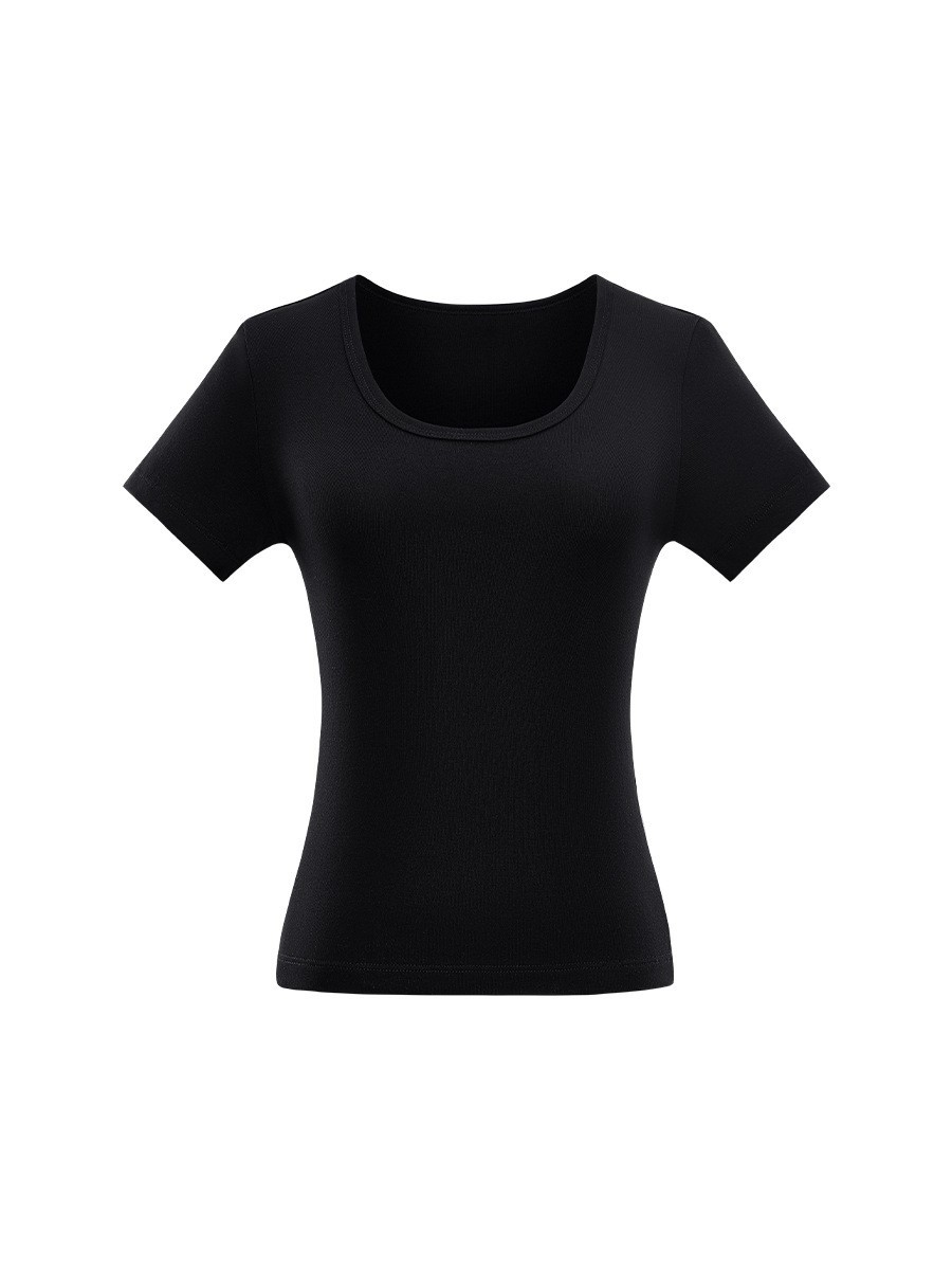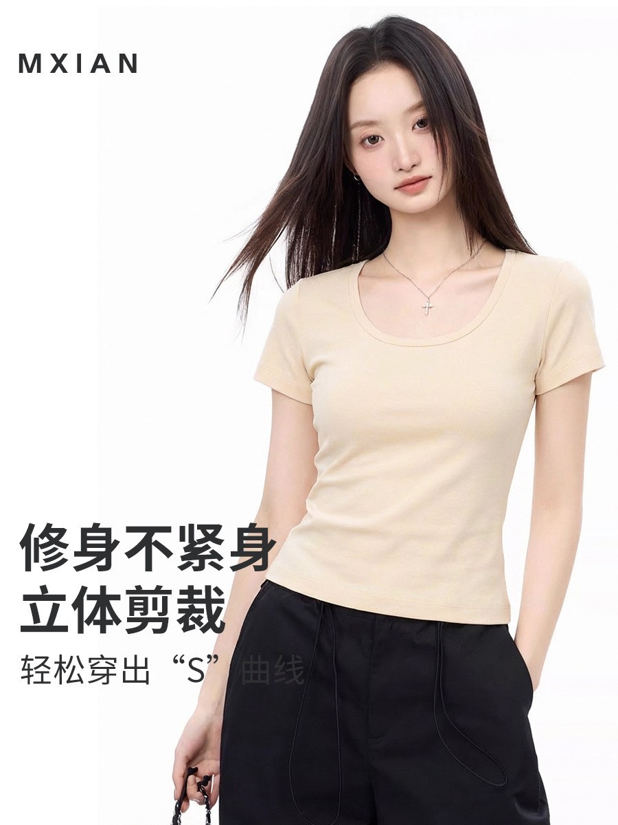 莫小仙(广州)服饰有限公司发布的大u领t恤女2025夏季新款修身外穿显瘦正肩纯色短袖弹力薄款上衣潮图集库