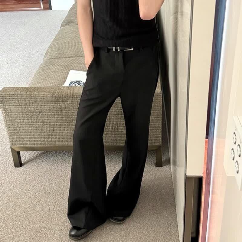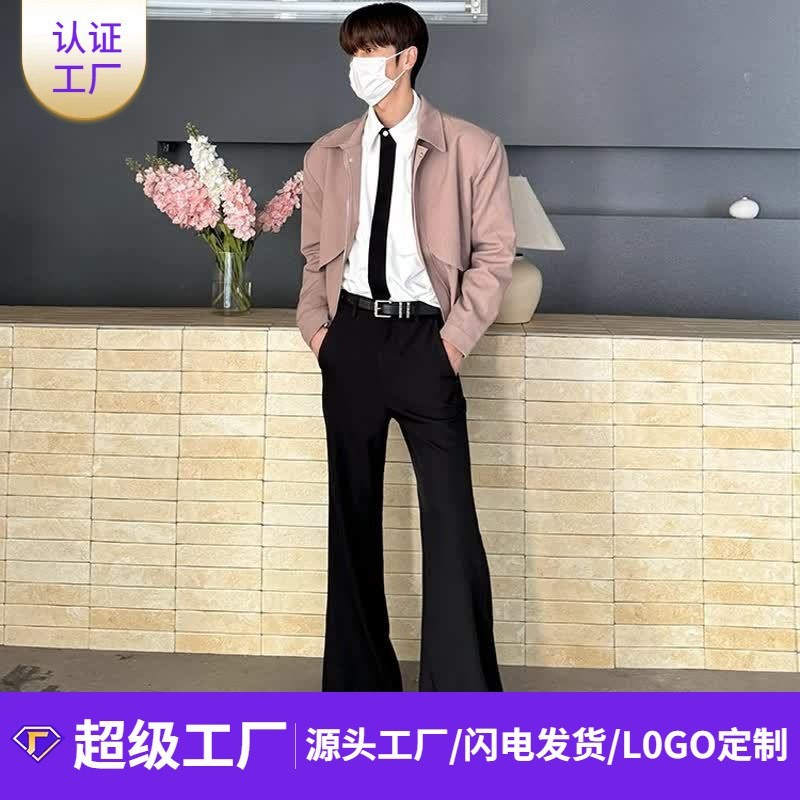 揭阳市泓瀚服装有限公司发布的DM Tenacious cleanfit黑色休闲 夏季垂坠感修身微喇拖地西裤男图集库