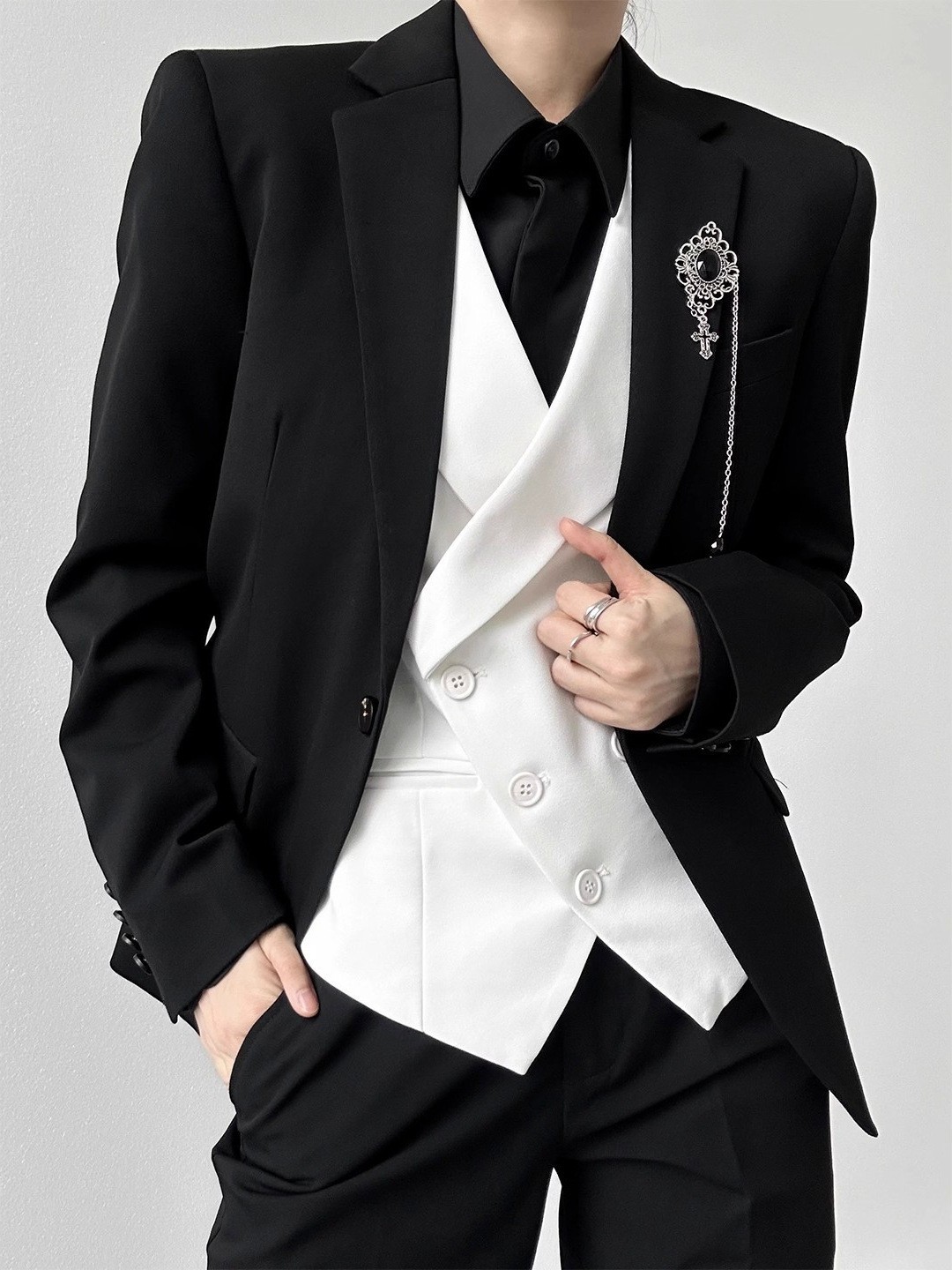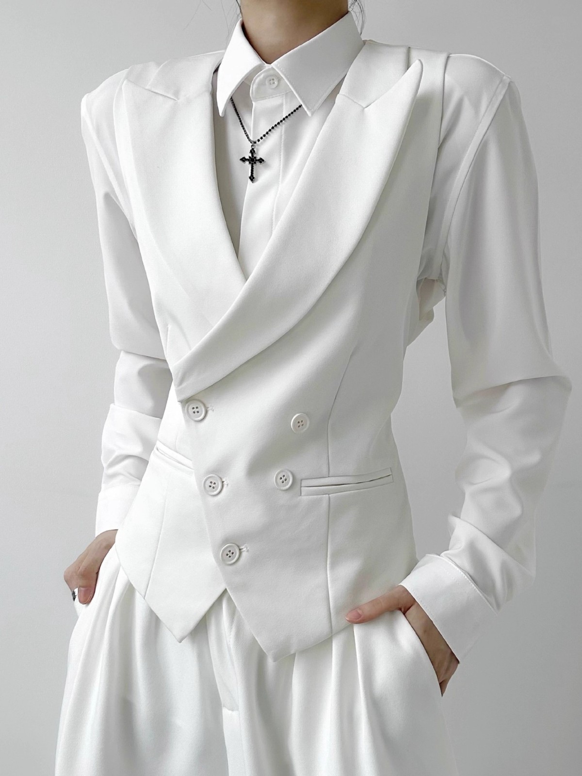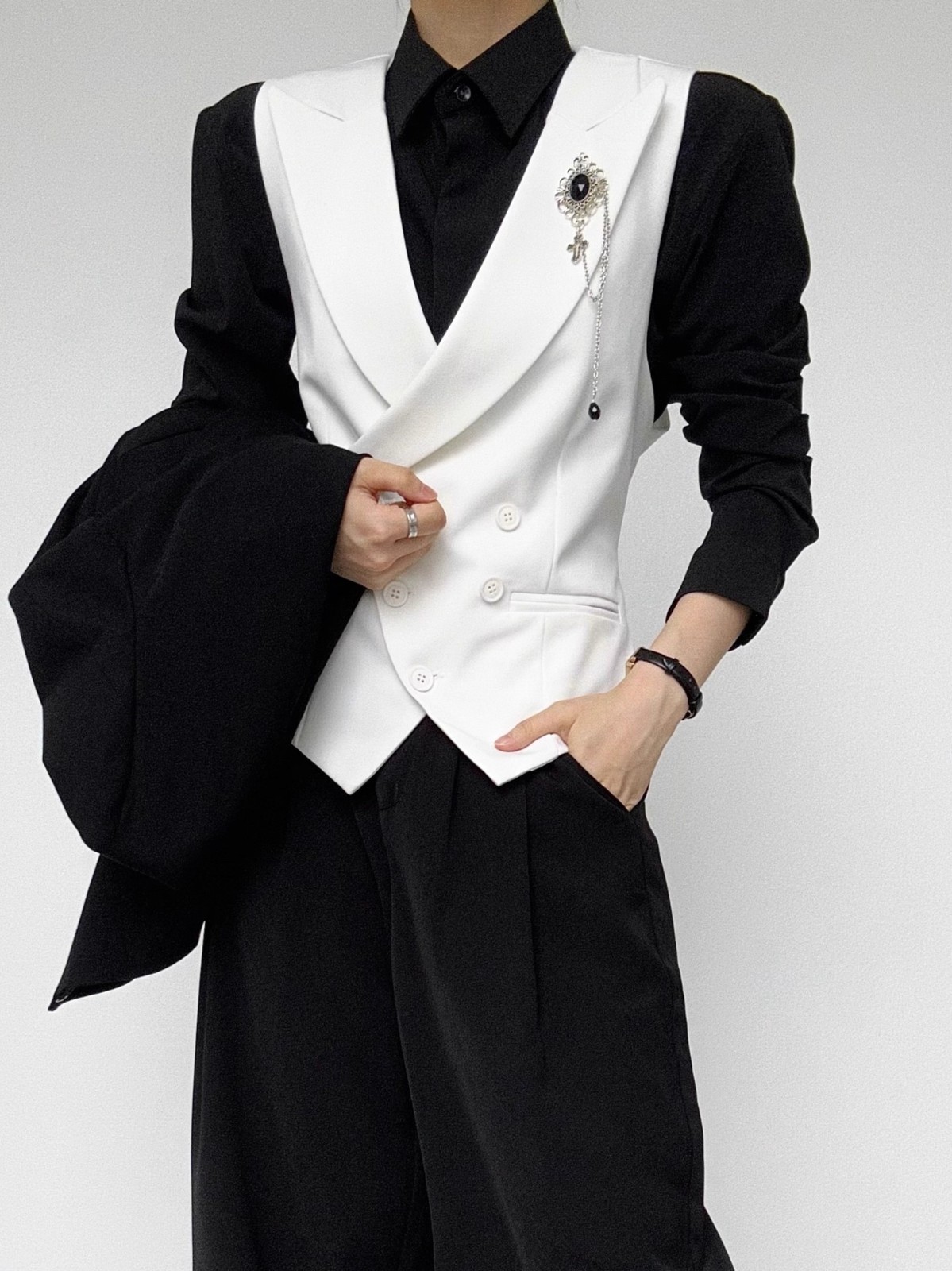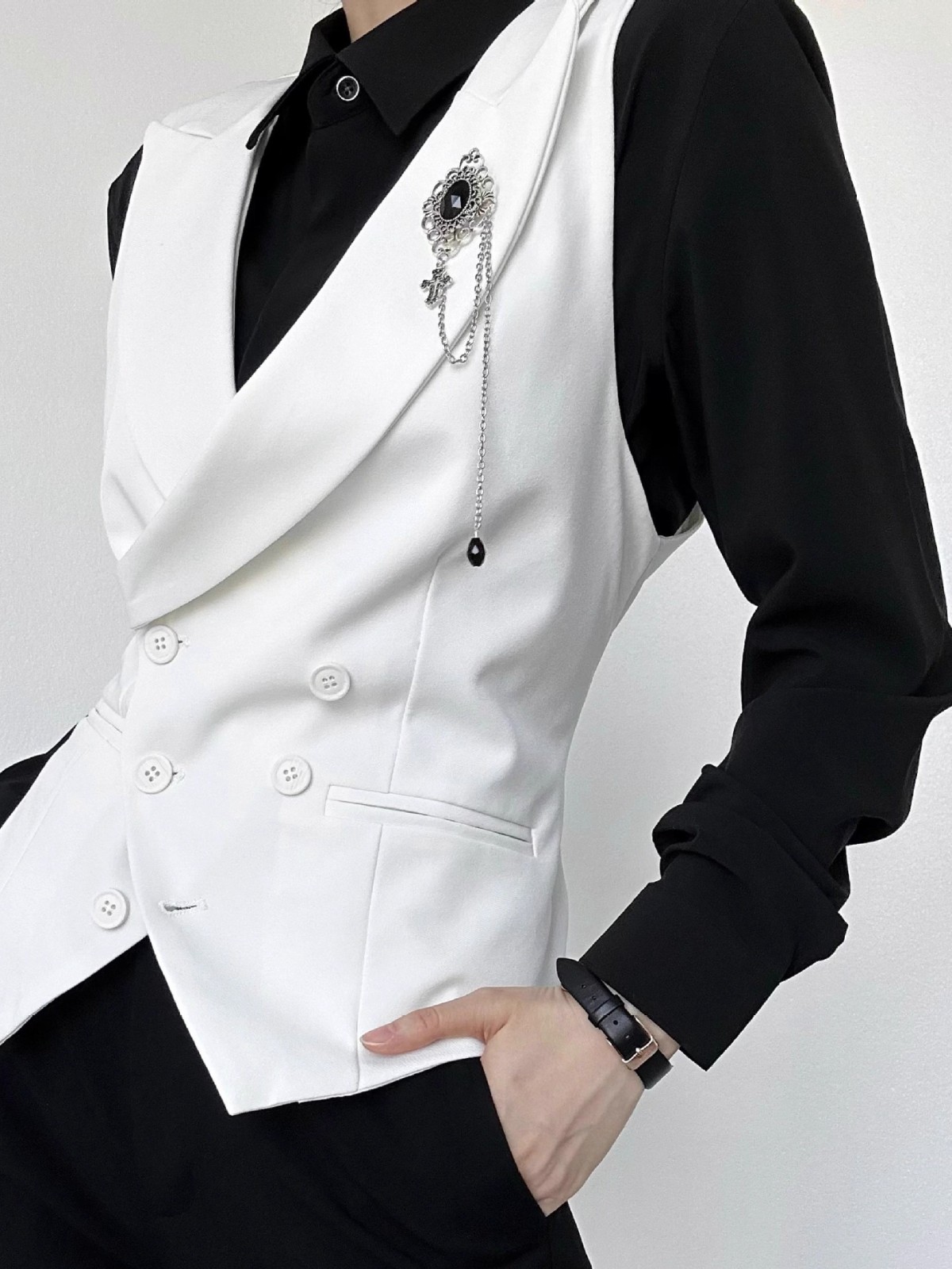 揭阳市丹斯格尔服饰有限公司发布的西服马甲青年白色修身百搭高级感男女中性风背心无袖坎肩马夹图集库