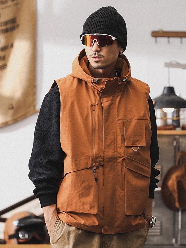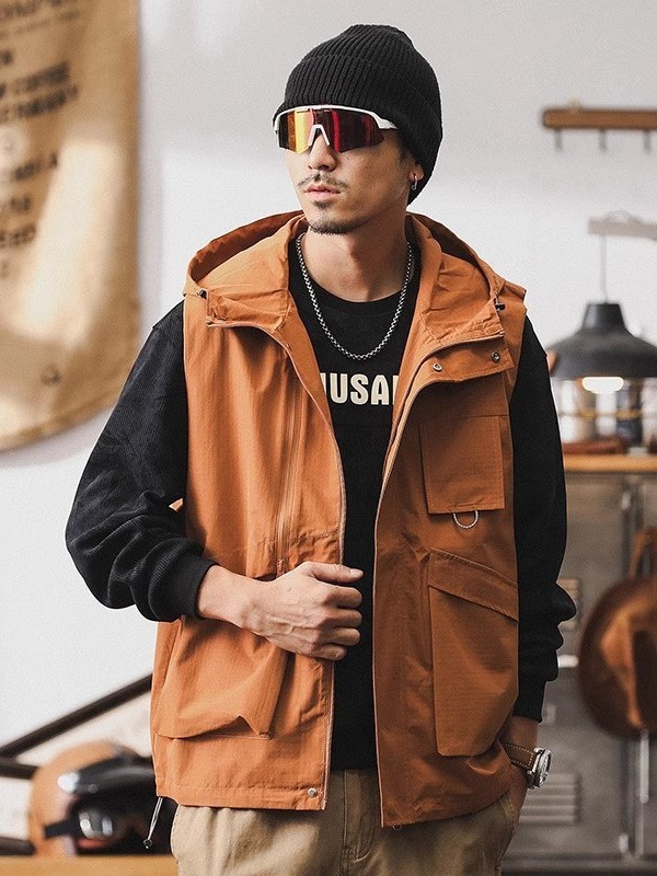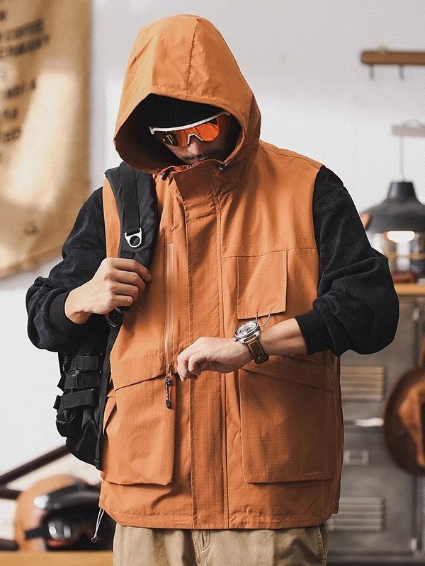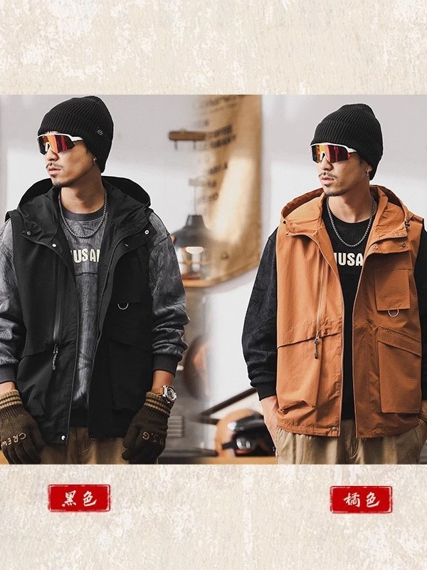揭阳市丹斯格尔服饰有限公司发布的美式山系连帽外套男春季2025新款潮牌宽松户外机能夹克工装马甲男图集库