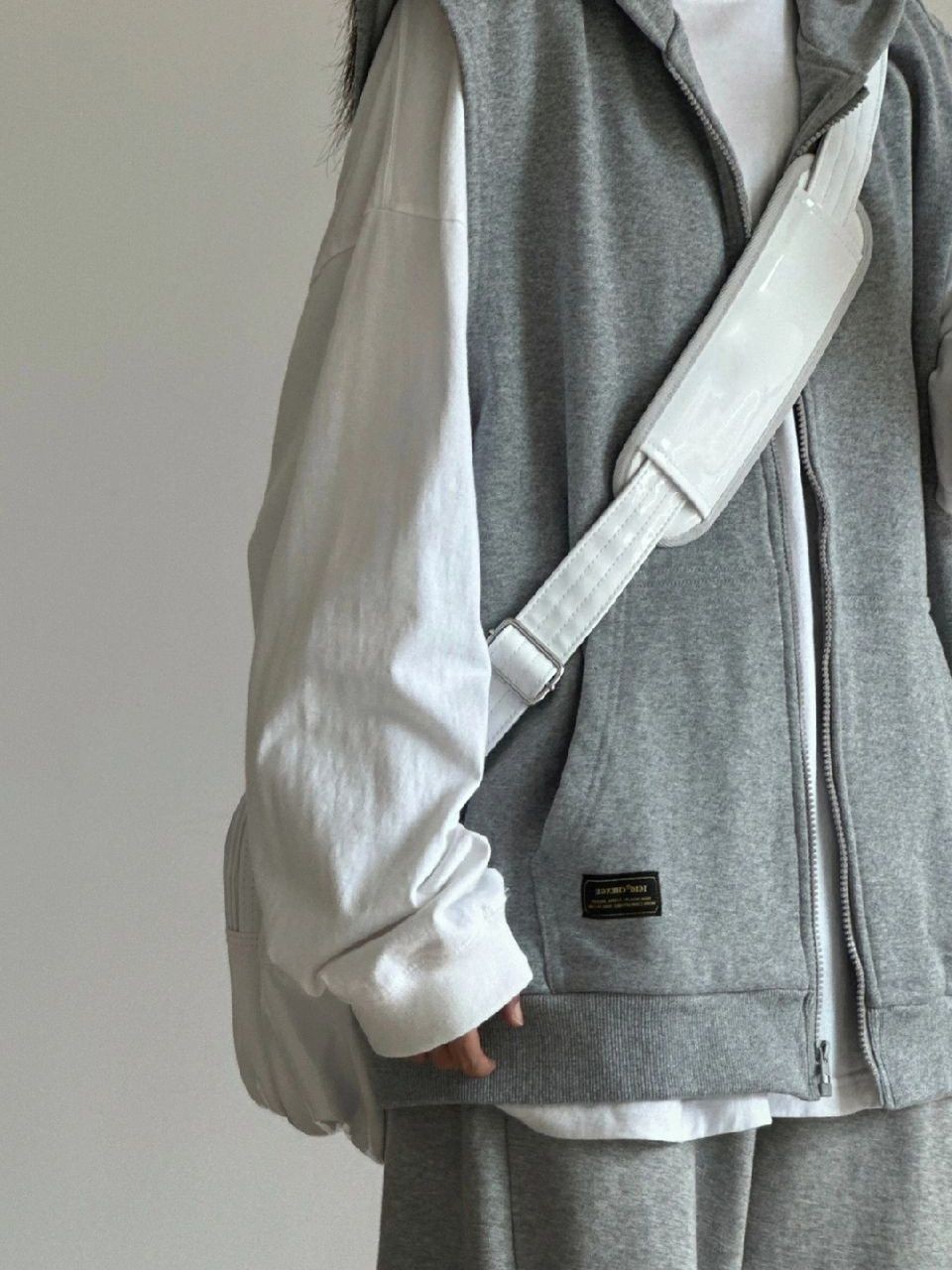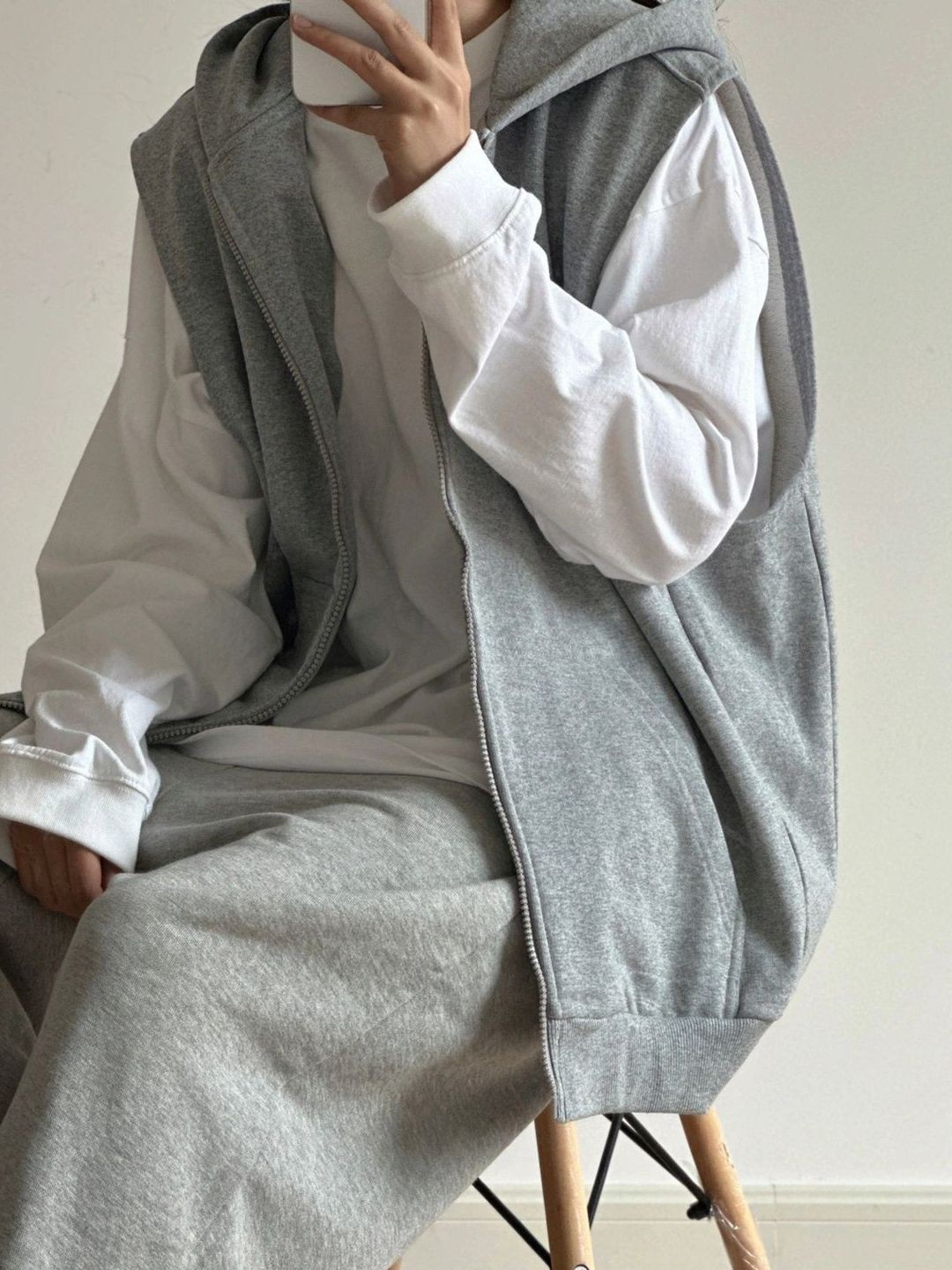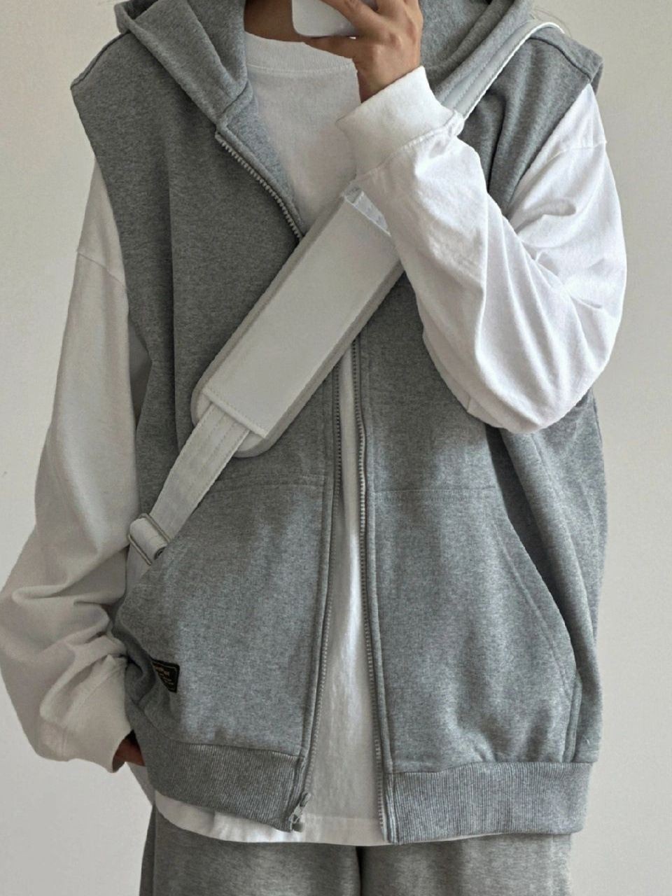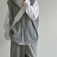 揭阳市丹斯格尔服饰有限公司发布的美式复古灰色无袖连帽拉链马甲男女春秋设计感小众慵懒风外搭上衣图集库