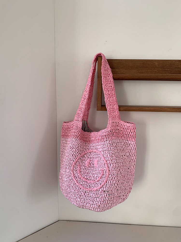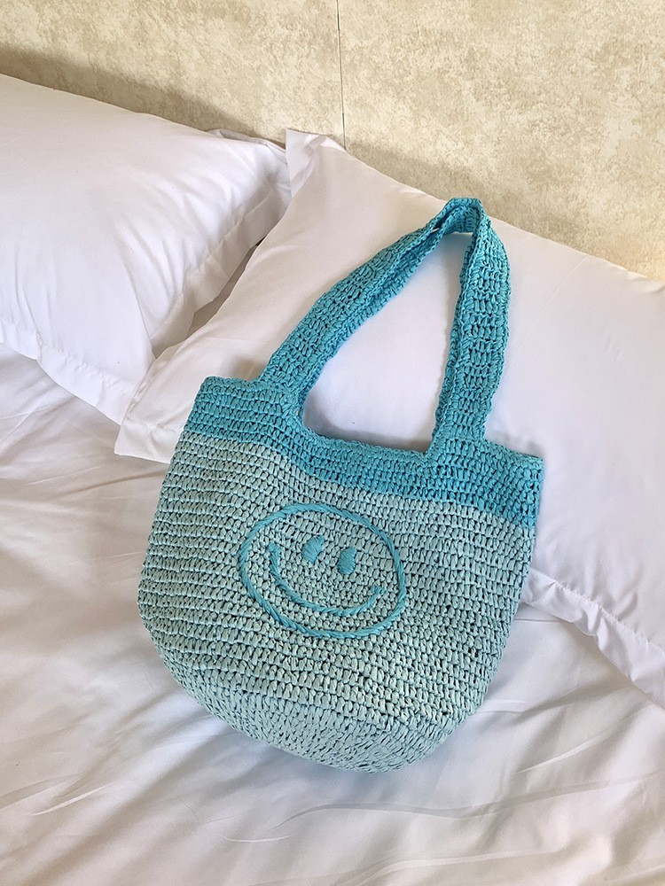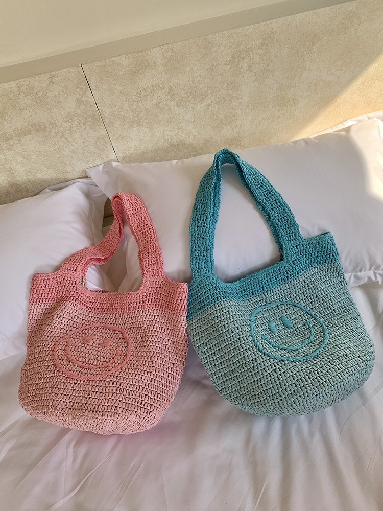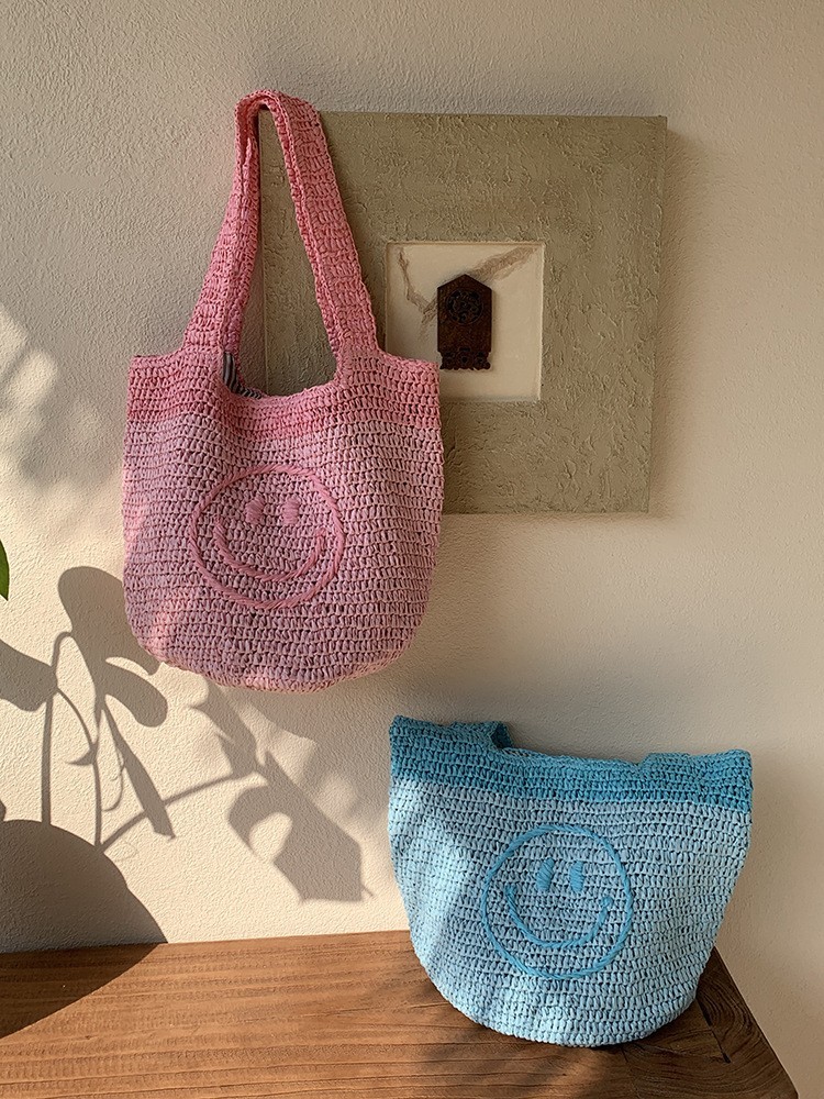莱州市三泽箱包有限公司发布的亚马逊跨境手钩波西米亚风包欧美手工钩编可爱笑脸针织迷你手提包图集库