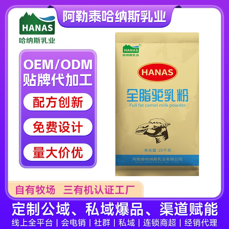 阿勒泰哈纳斯乳业有限公司发布的定制代工有机纯骆驼奶粉大包粉贴牌全脂驼奶粉富硒免疫球高钙配方图集库
