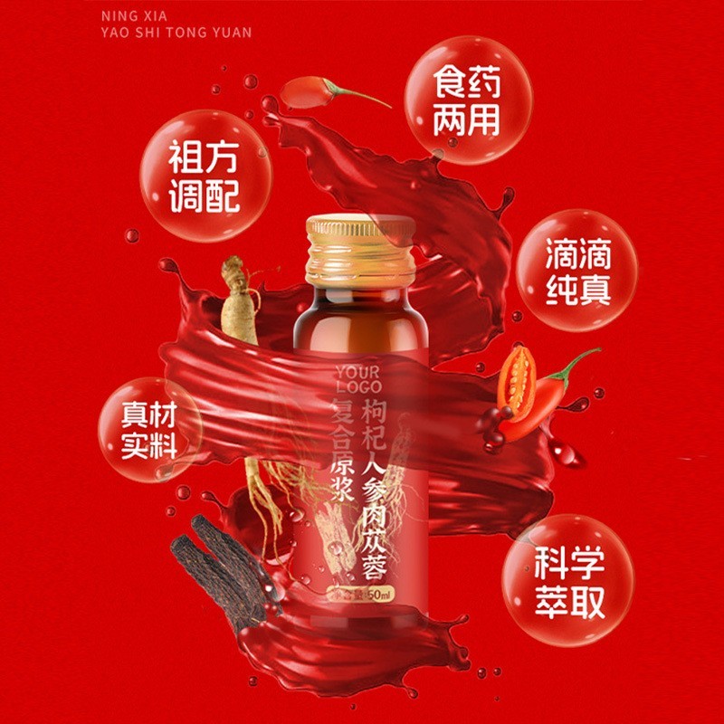 宁夏药食同源有机食品研发有限公司发布的工厂OEM人参肉苁蓉枸杞原浆 宁夏药食同源传统滋补养生黄精原浆饮图集库