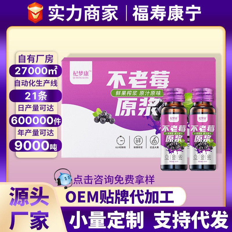 宁夏福寿康宁大健康生物科技有限公司发布的野樱莓原浆鲜果鲜榨黑果花楸贴牌代工不老莓原浆 OEM代工厂图集库