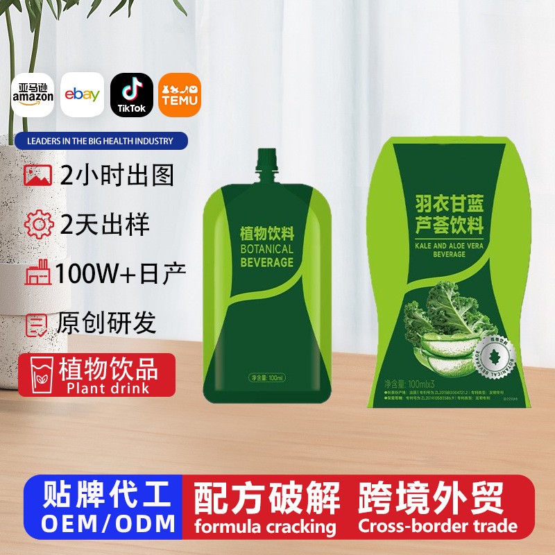 安徽省志医辅仁健康产业发展有限公司发布的定制羽衣甘蓝芦荟植物饮料超模便携饮吸嘴袋果蔬膳食纤维oem贴牌,代加工平台图集库